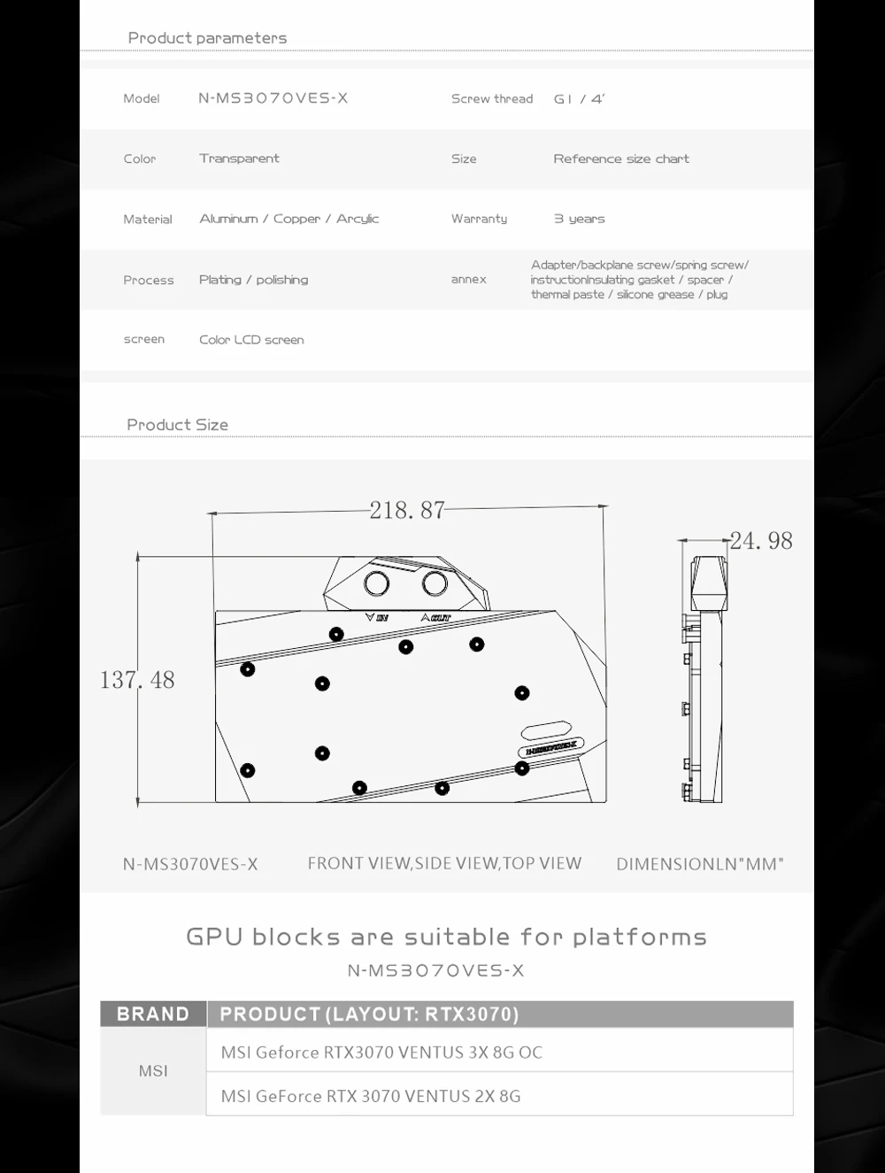 Comprar Bykski-bloque de agua GPU para MSI RTX 3070 VENTU, 3X 8G OC/RTX3070/3060ti VENTU, tarjeta de vídeo 2X 8G, bloque VGA, enfriador GPU, N-MS3070VES-X