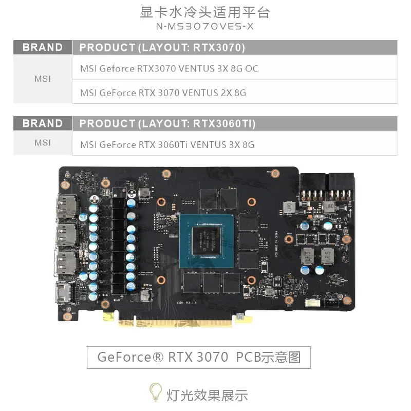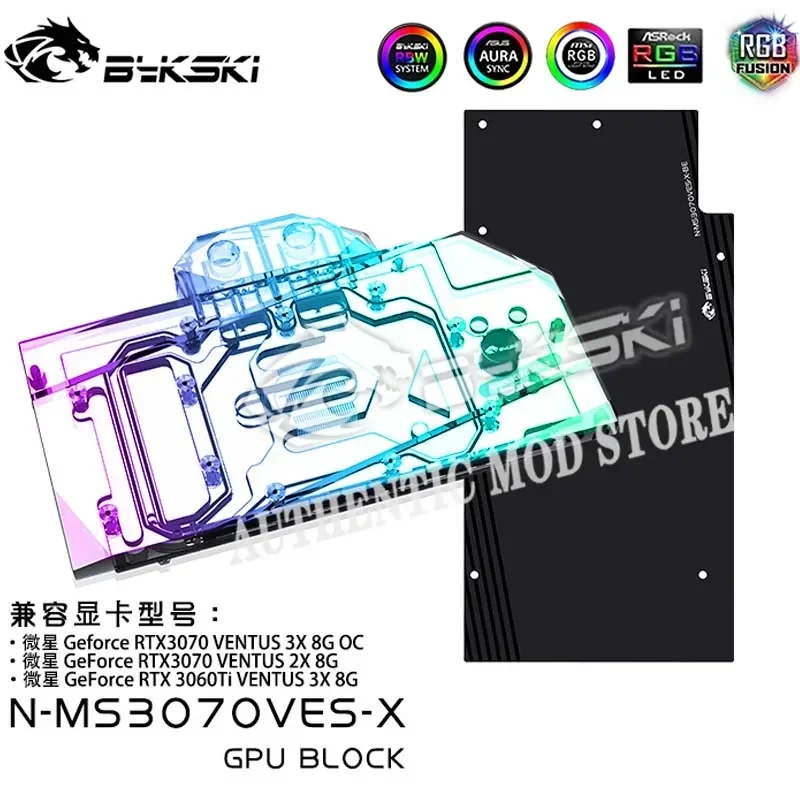 Comprar Bykski-bloque de agua GPU para MSI RTX 3070 VENTU, 3X 8G OC/RTX3070/3060ti VENTU, tarjeta de vídeo 2X 8G, bloque VGA, enfriador GPU, N-MS3070VES-X