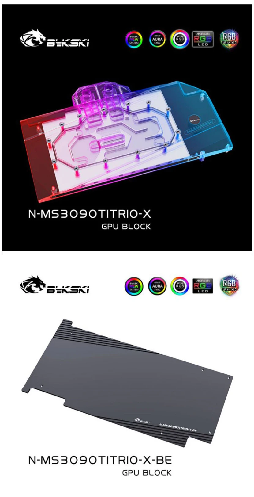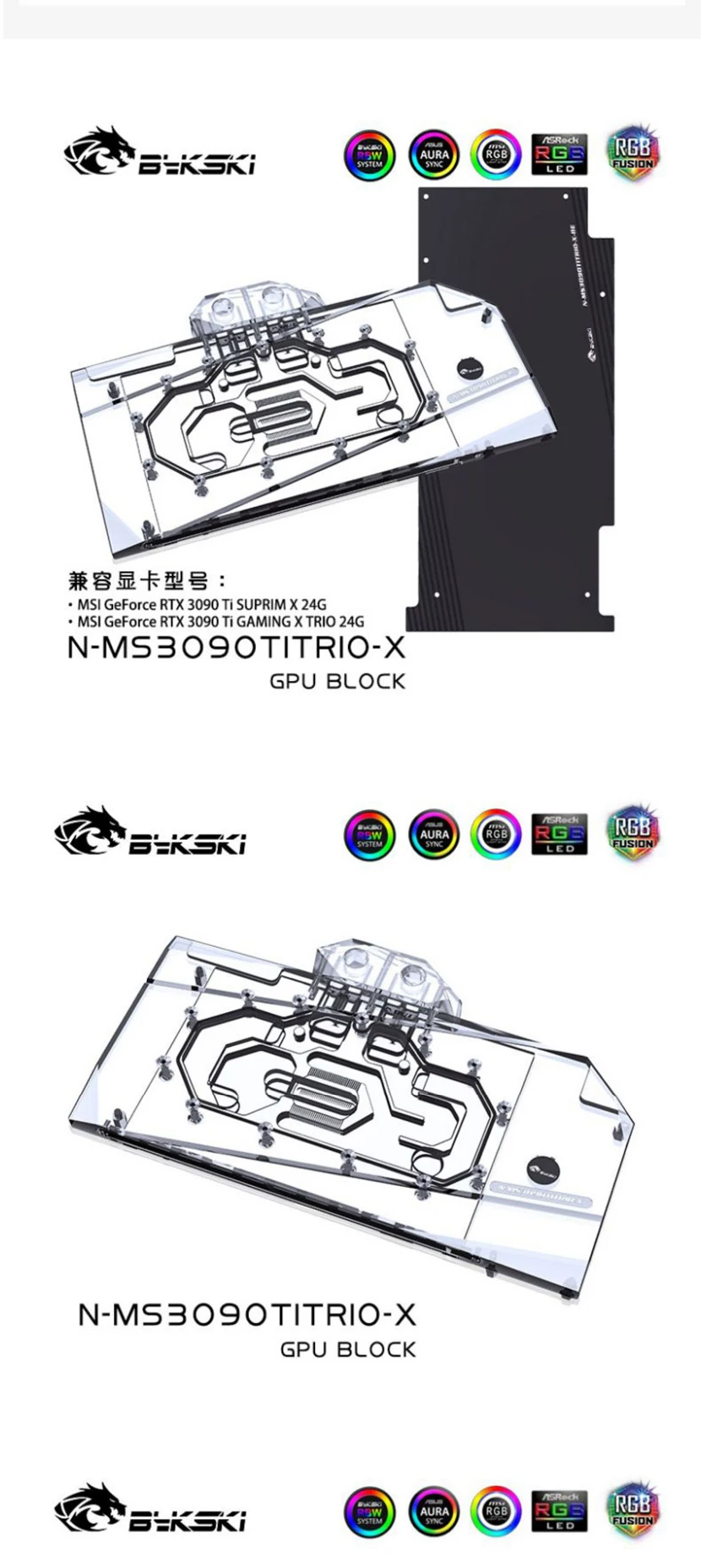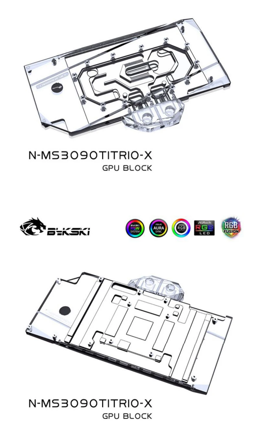 Bloque de agua Bykski GPU para MSI RTX 3090TI GAMING X TRIO/SUPRIM X 24G, con placa posterior de cobre acrílico/radiador