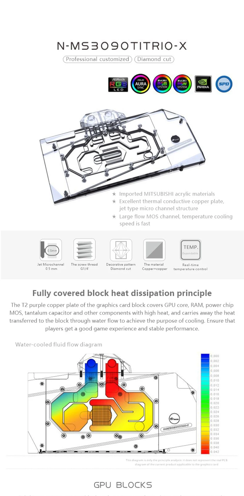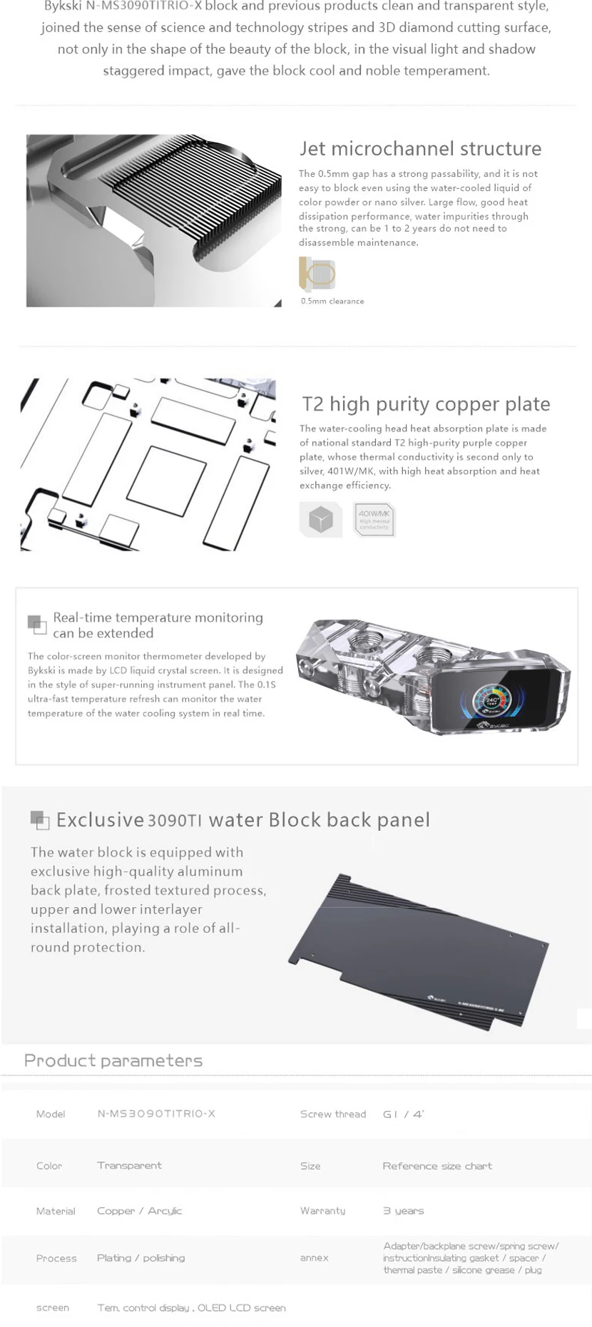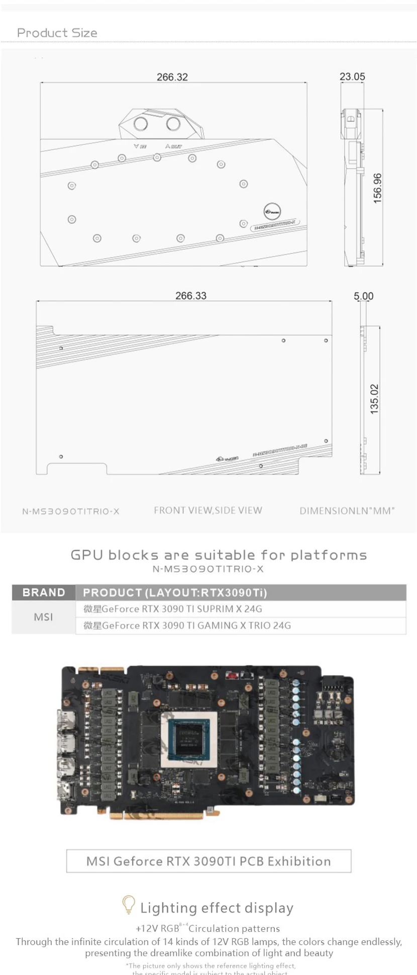 Bloque de agua Bykski GPU para MSI RTX 3090TI GAMING X TRIO/SUPRIM X 24G, con placa posterior de cobre acrílico/radiador