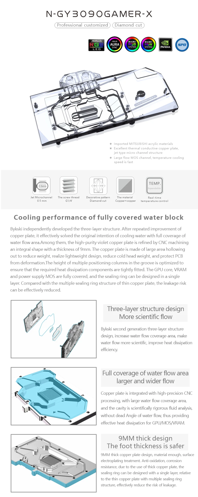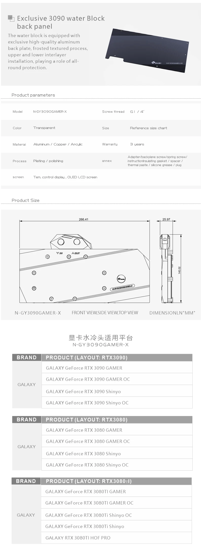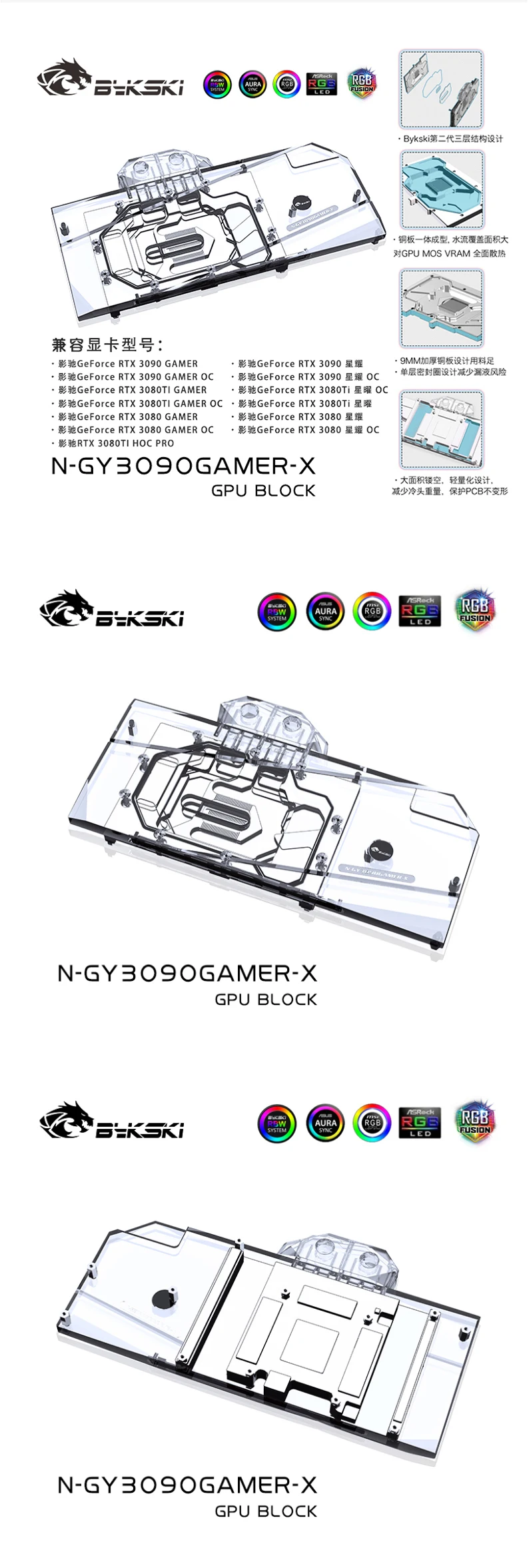 Bykski-bloque de agua de GPU para N-GY3090GAMER-X, tarjeta gráfica para GAMER GALAX GeForce RTX 3090/3080, Enfriador de GPU, refrigeración líquida para PC
