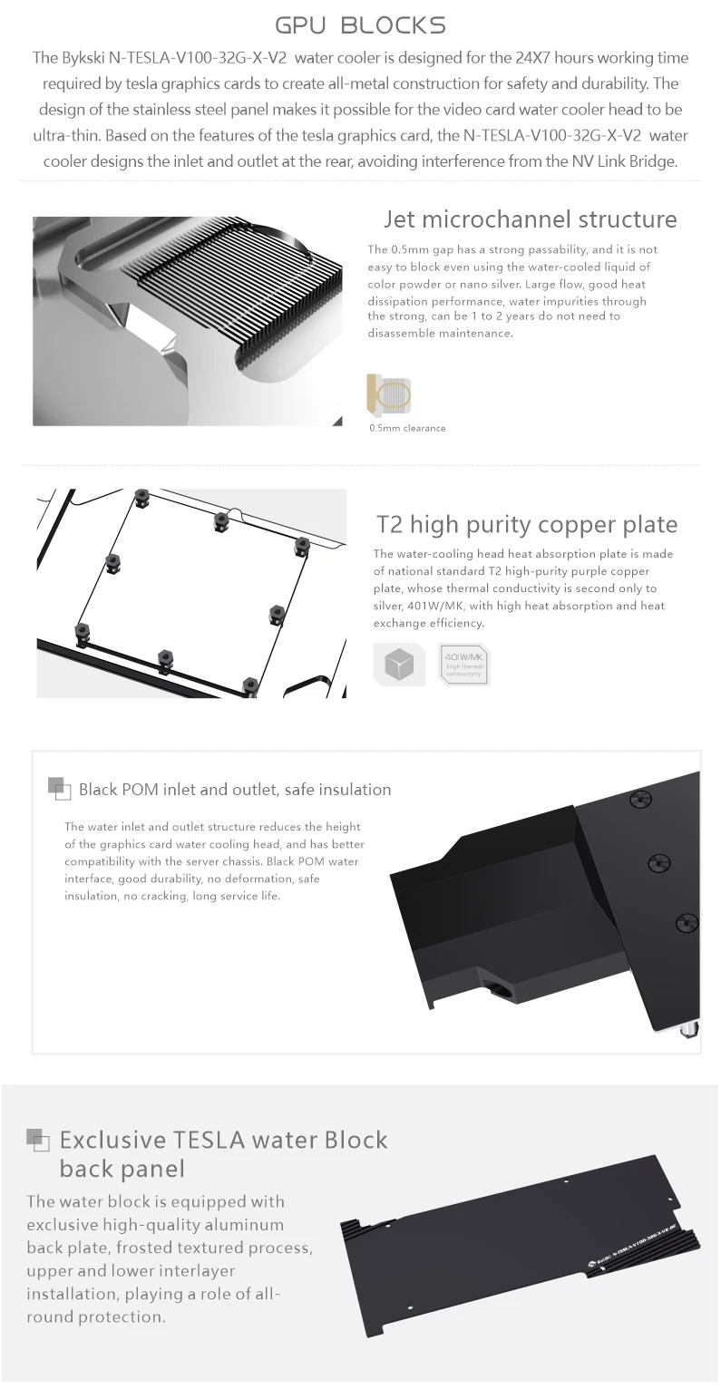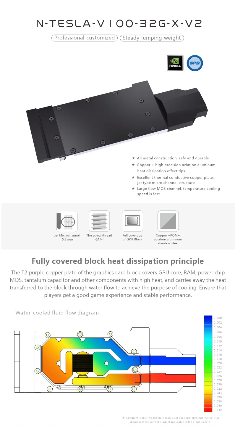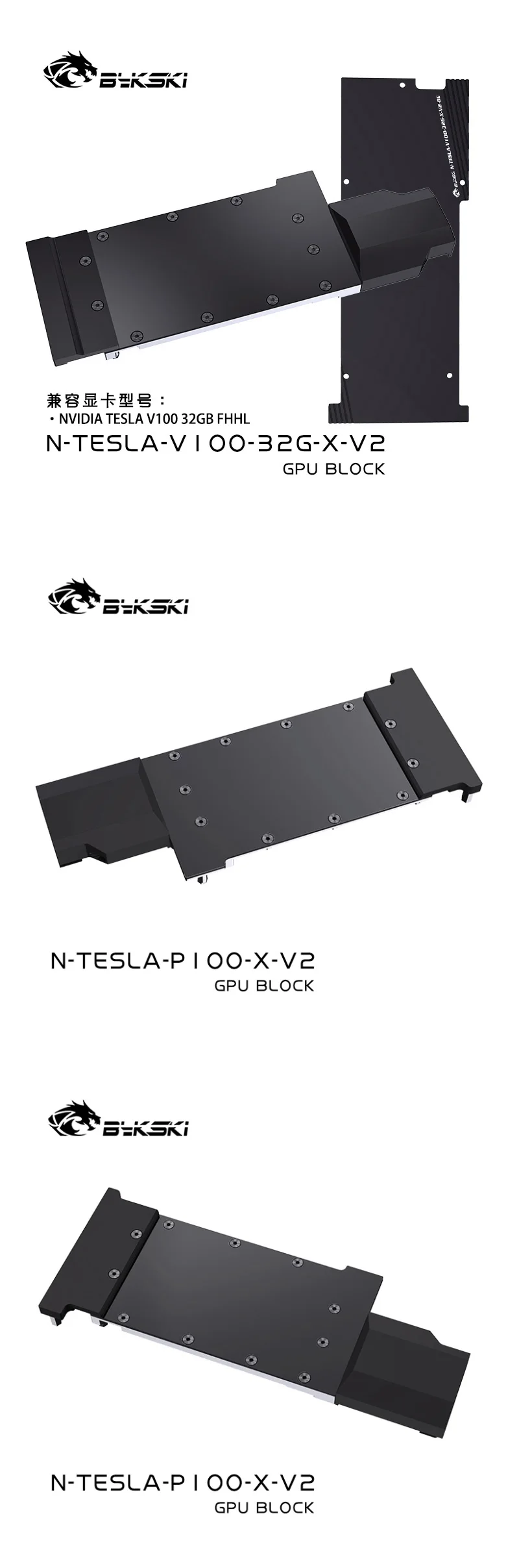 Bykski-bloque de agua GPU para NVIDIA TESLA V100-32G, tarjeta FHHL, radiador de refrigeración de cobre, N-TESLA-V100-32G-X-V2