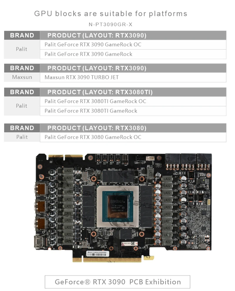 Comprar Bykski-bloque de agua GPU, para Palit RTX 3090 GameRock OC / Maxsun RTX 3090, tarjeta gráfica de chorro TURBO, radiador refrigerado/N-PT3090GR-X