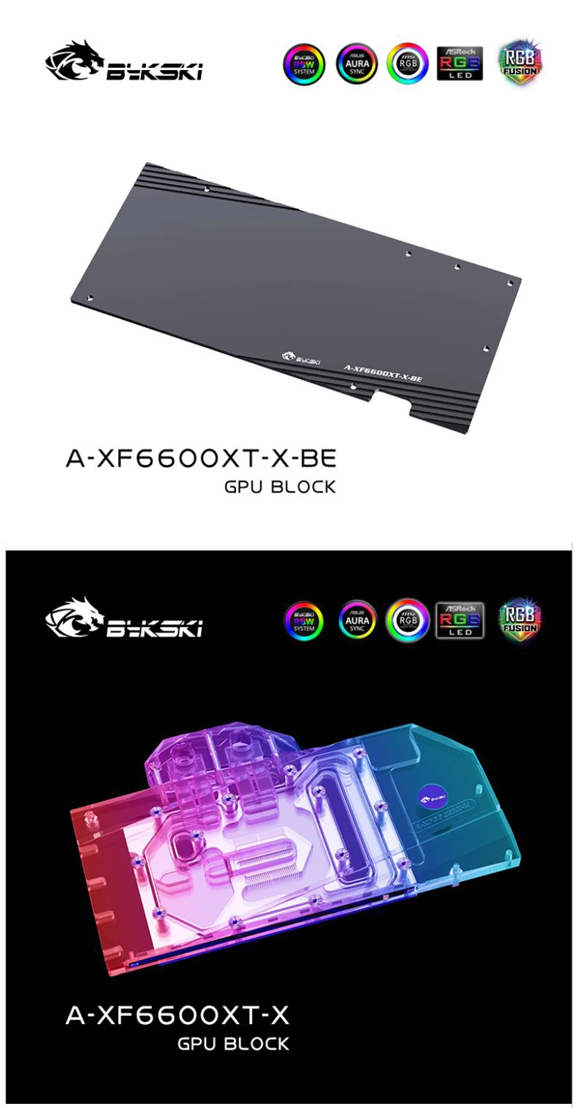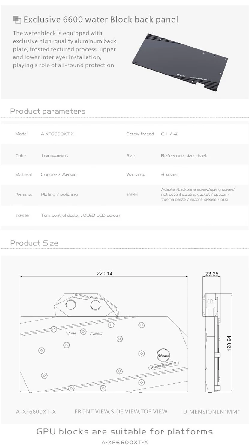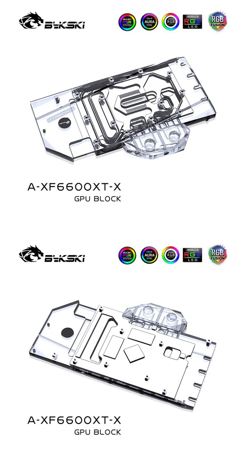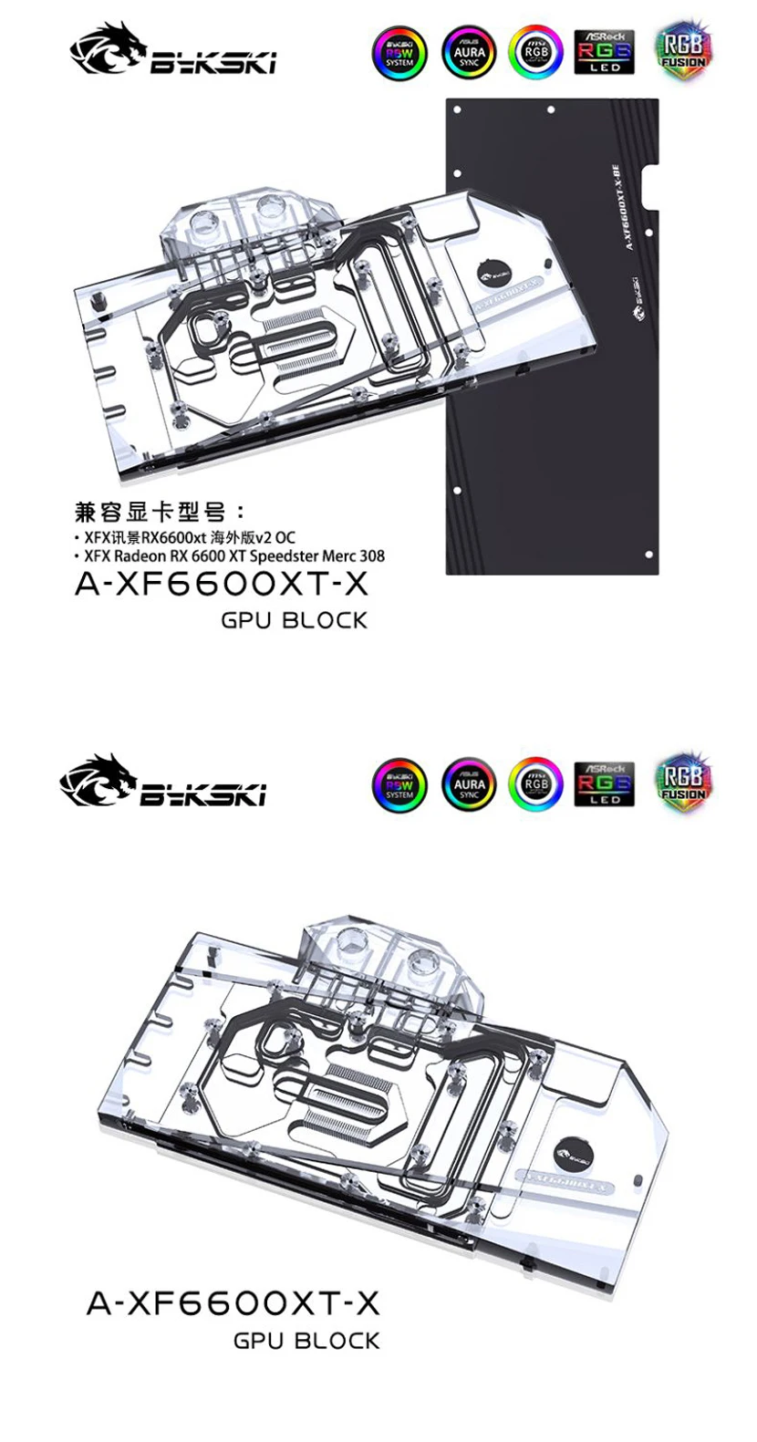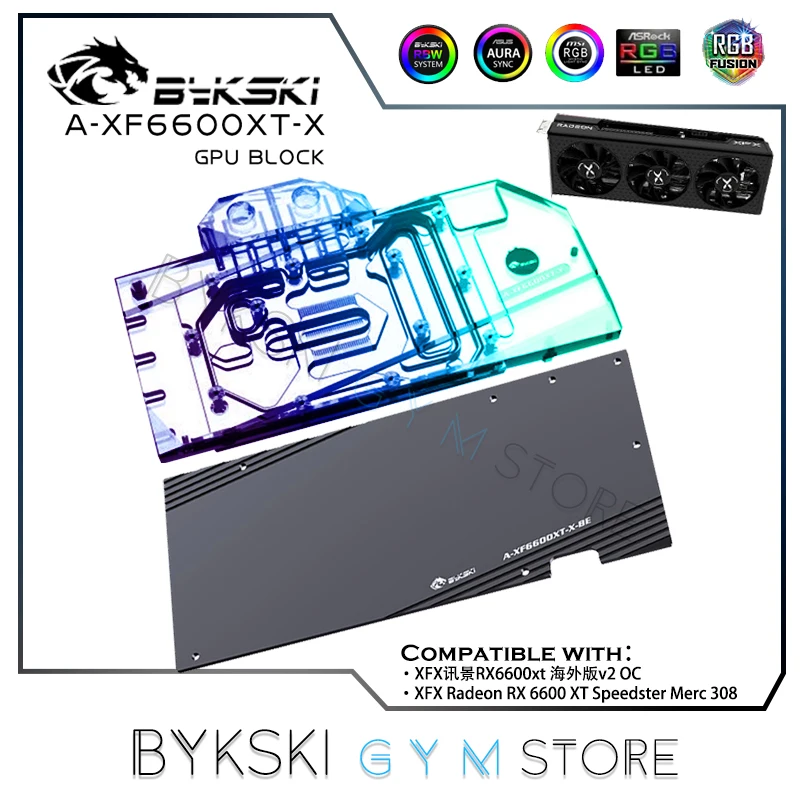 Bykski-bloque de agua GPU para radiador de refrigeración, accesorio para XFX Radeon RX 6600XT Speedster Merc 308/ V2 OC ,VGA Copper, 5V/12V A-XF6600XT-X