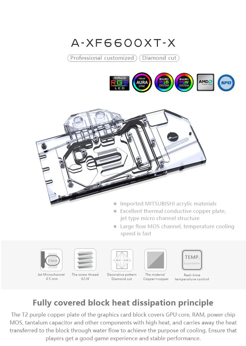 Comprar Bykski-bloque de agua GPU para radiador de refrigeración, accesorio para XFX Radeon RX 6600XT Speedster Merc 308/ V2 OC ,VGA Copper, 5V/12V A-XF6600XT-X