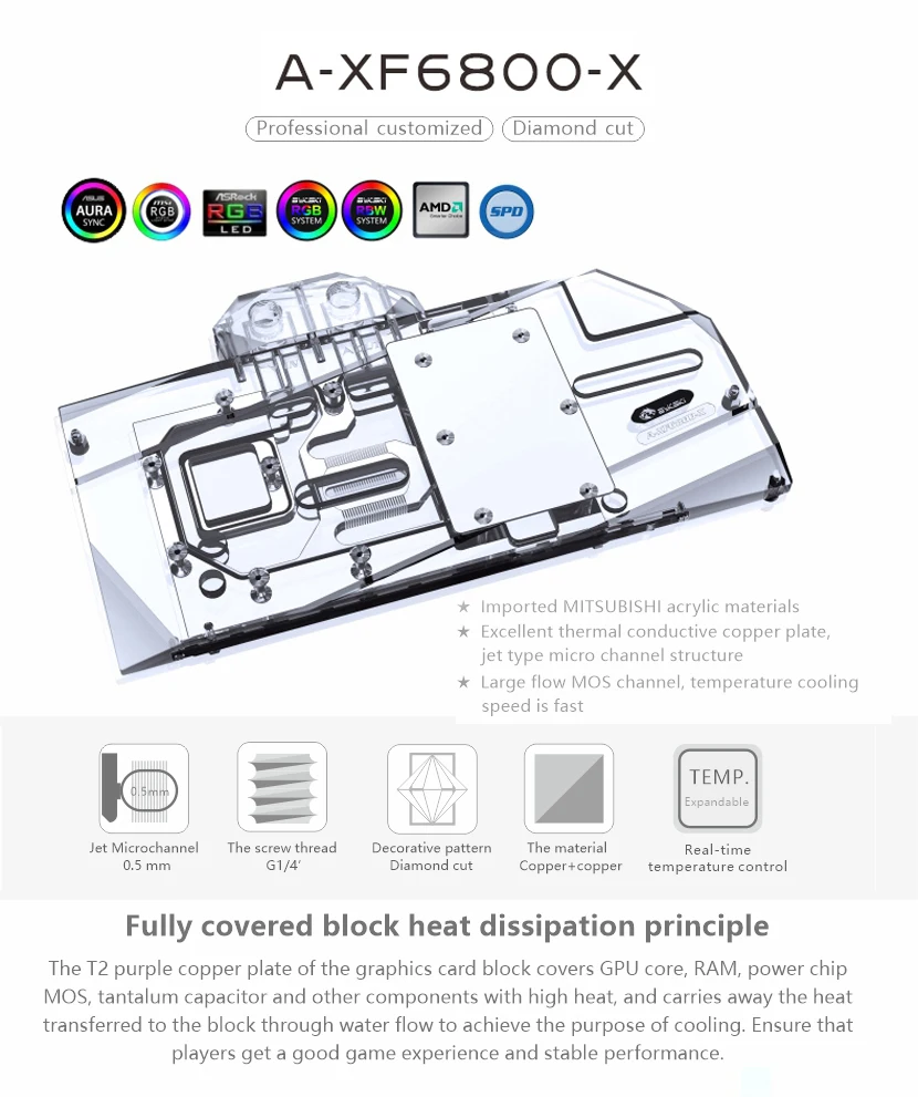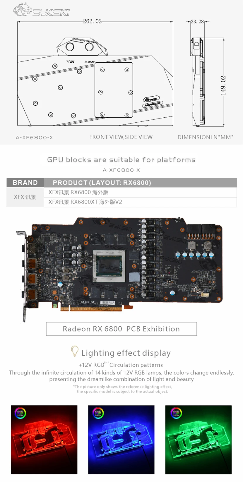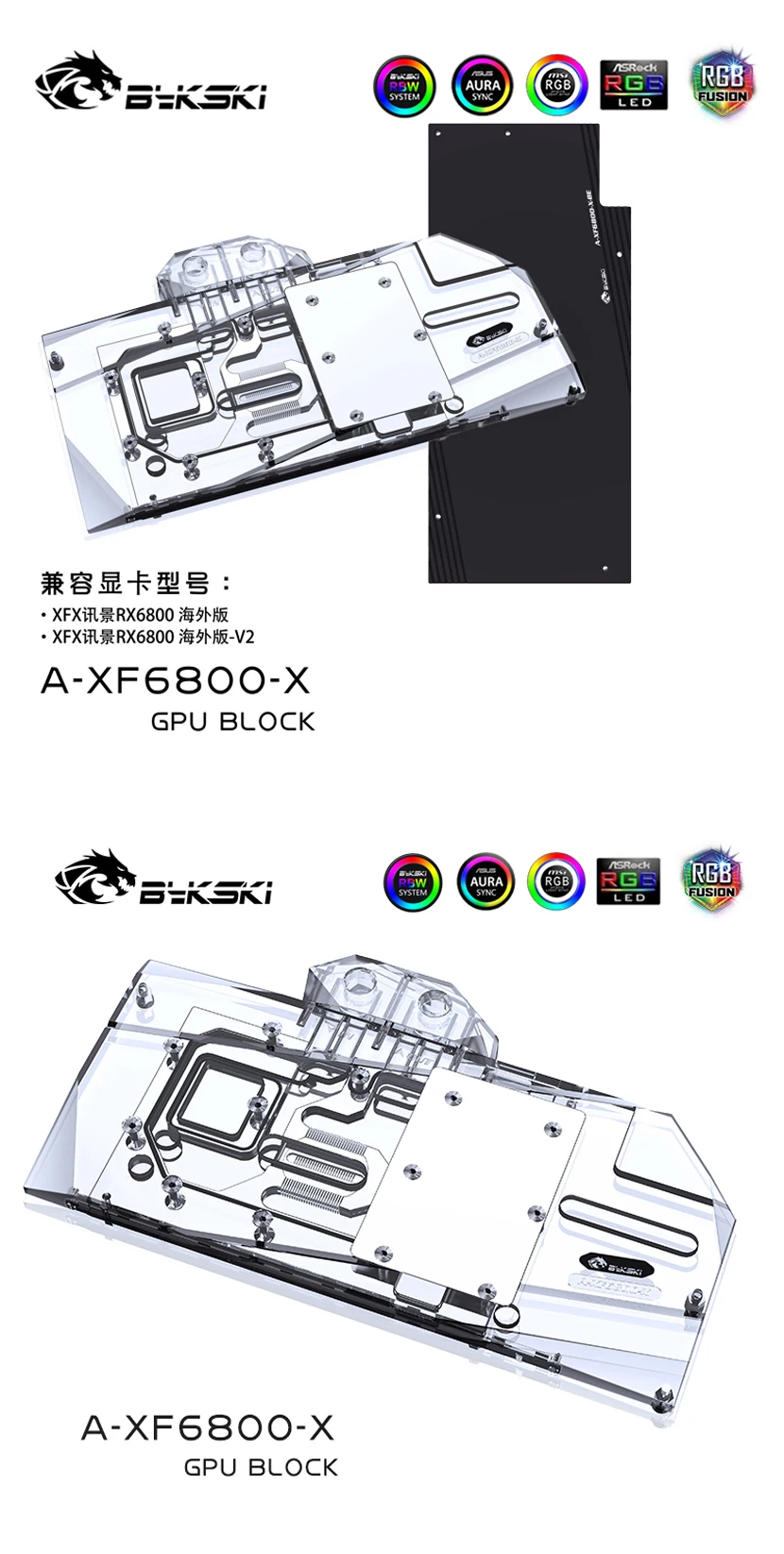 Comprar Bykski-bloque de agua GPU RGB para tarjeta gráfica serie XFX AMD RADEON RX 6800, radiador enfriador VGA de cobre + placa trasera, A-XF6800-X