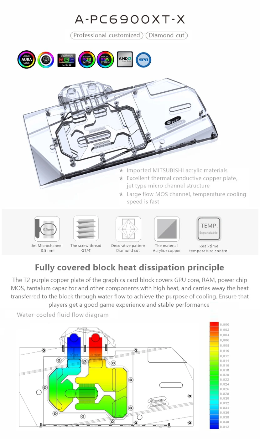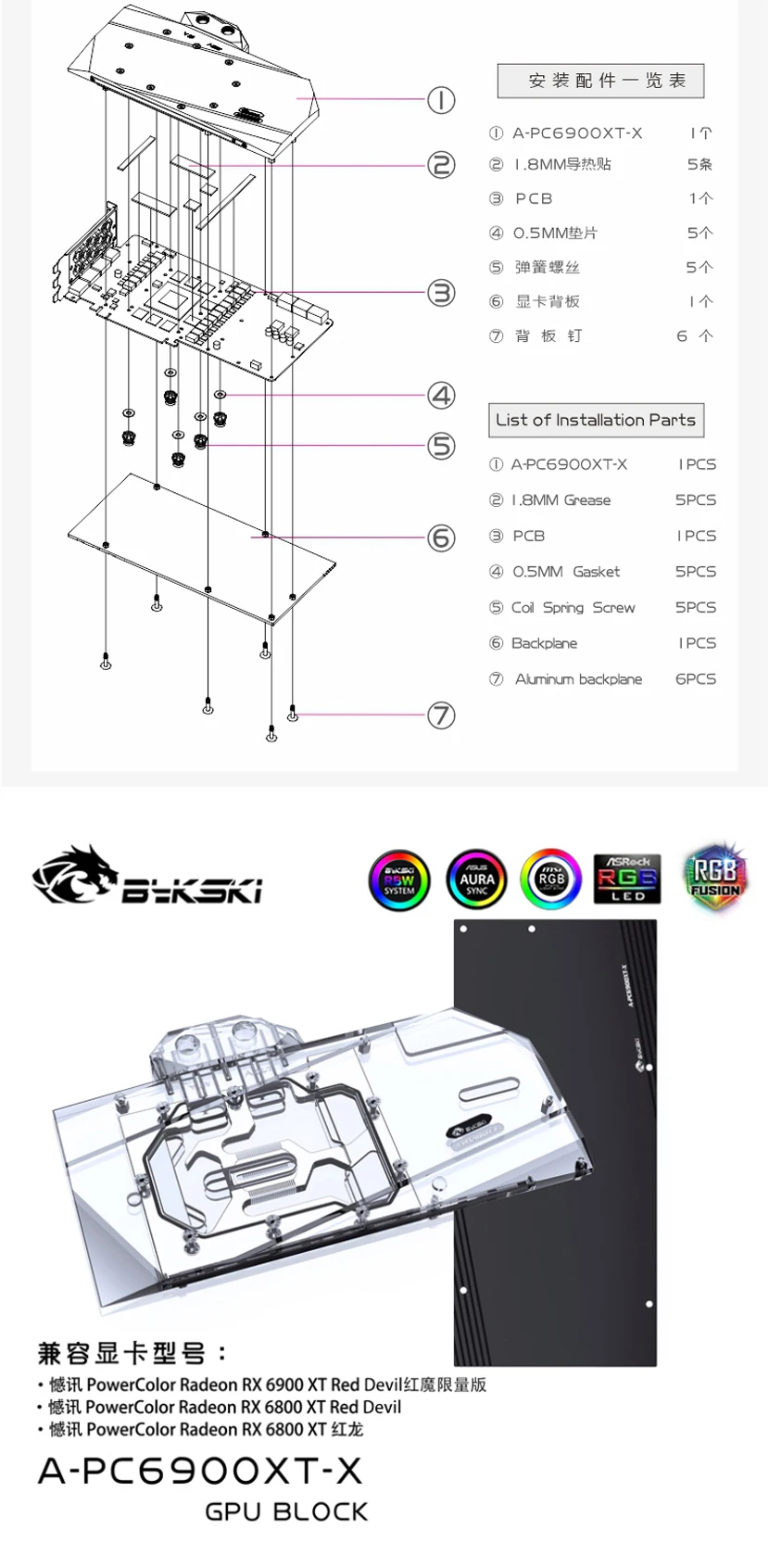 Comprar Bykski-bloque de agua GPU RX 6900XT para Powercolor RX 6900XT 6800XT Red Devil / Red Dragon, A-PC6900XT-X enfriador líquido VGA