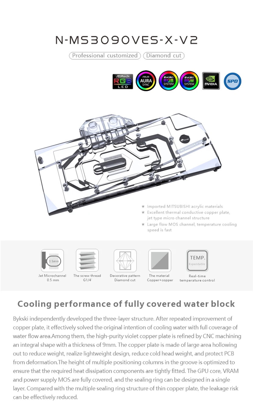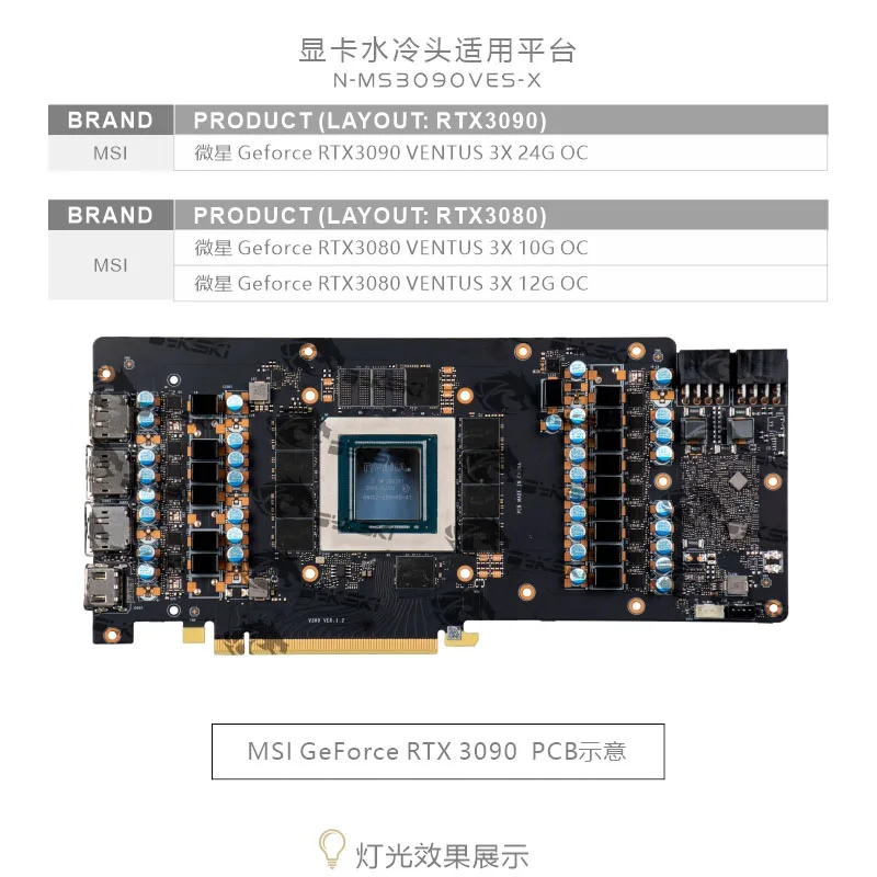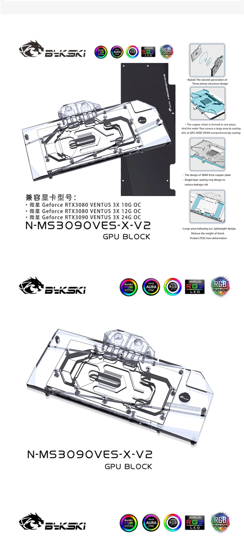 Comprar Bykski-bloque de agua GPU para tarjeta gráfica MSI Geforce RTX 3080 3090 VENTUS 3X 10G OC, VGA Liquild Cooler 12V/5V,N-MS3090VES-X-V2