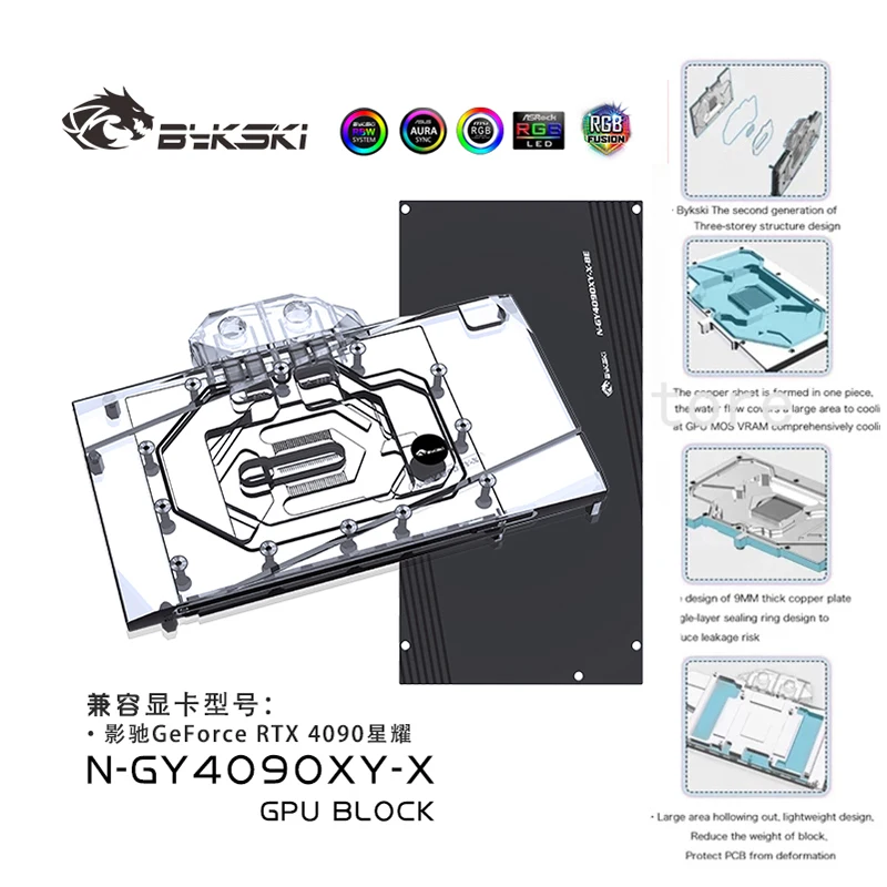 Comprar Bykski-bloque de agua para N-GY4090XY-X, Enfriador de agua para GALAXY RTX 4090 GPU, tarjeta de vídeo BOOMSTAR, radiador de cubierta completa RGB, 5V, 12V