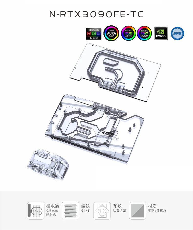 Comprar Bykski-bloque de agua para NVIDIA RTX3090, tarjeta GPU edición Founder/Bloque de cobre/refrigeración de placa trasera/tarjeta GPU RGB AURA / AIC