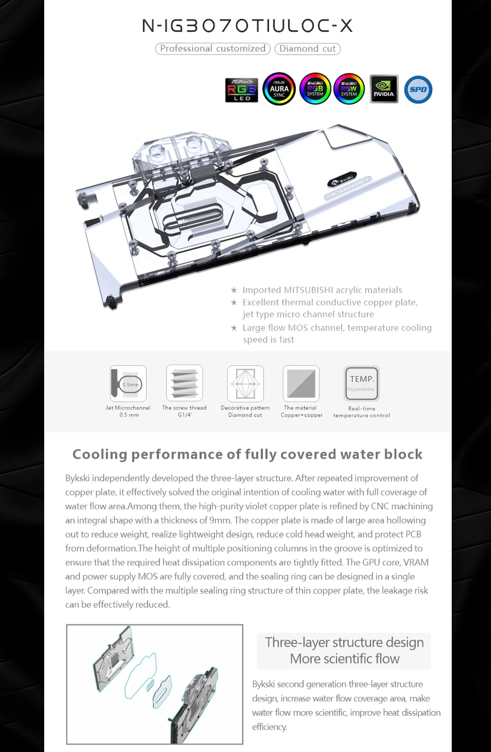 Comprar Bykski-bloque de agua para radiador de tarjeta gráfica, GPU, enfriador VGA, colorido, iGame RTX 3070/3070 Ti, Ultra avanzado OC, N-IG3070TIULOC-X