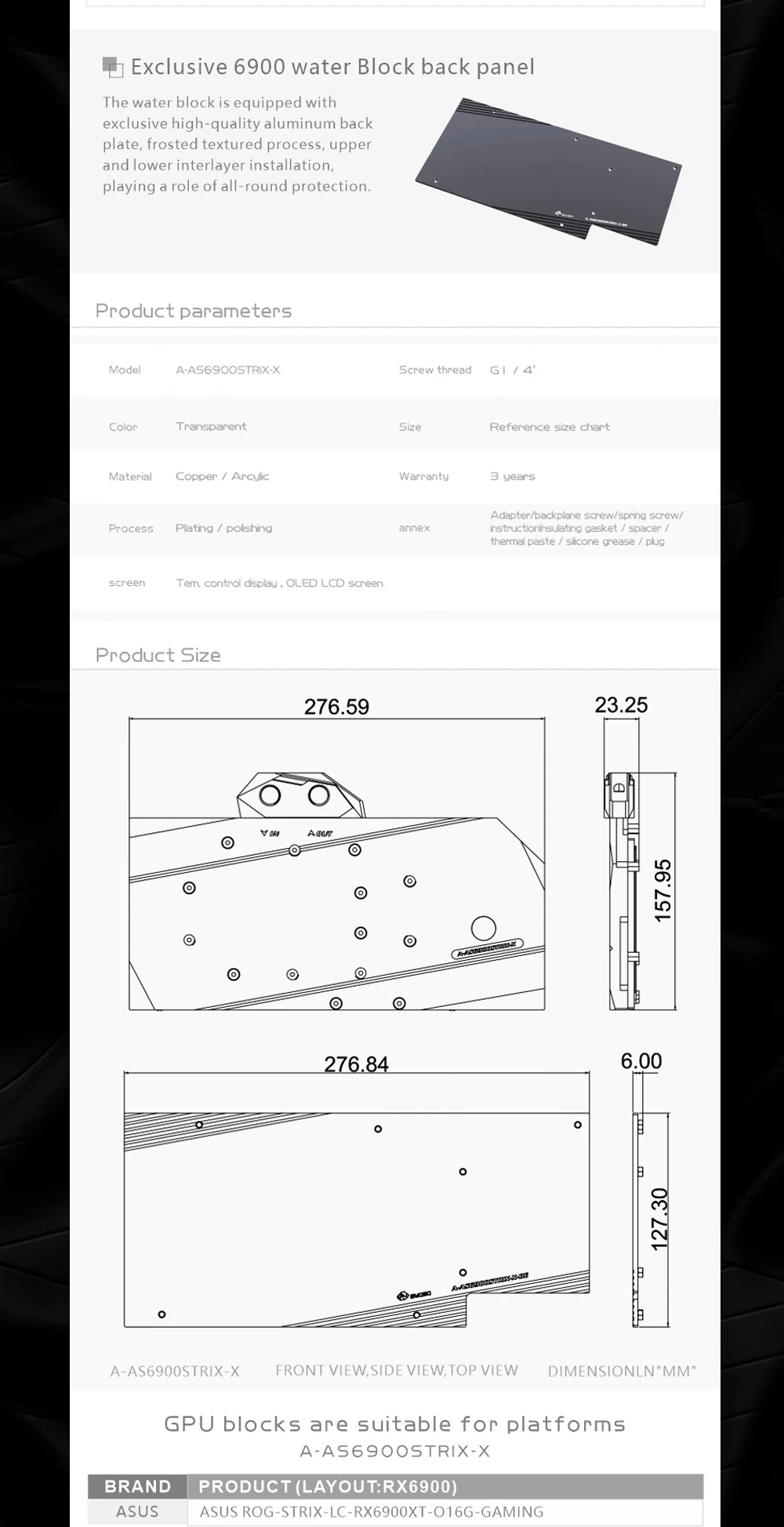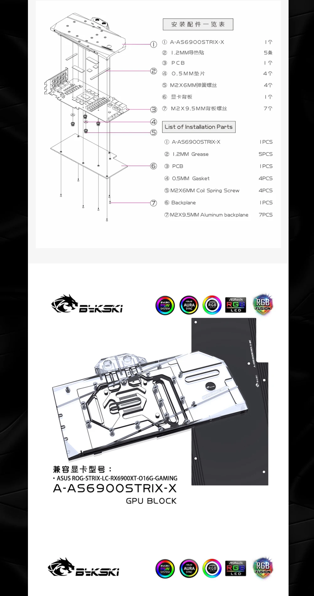 Comprar Bykski-bloque de agua para tarjeta gráfica ASUS ROG-STRIX-LC-RX6900XT-O16G-GAMING, refrigeración VGA, Enfriador de GPU de cobre, A-AS6900STRIX-X