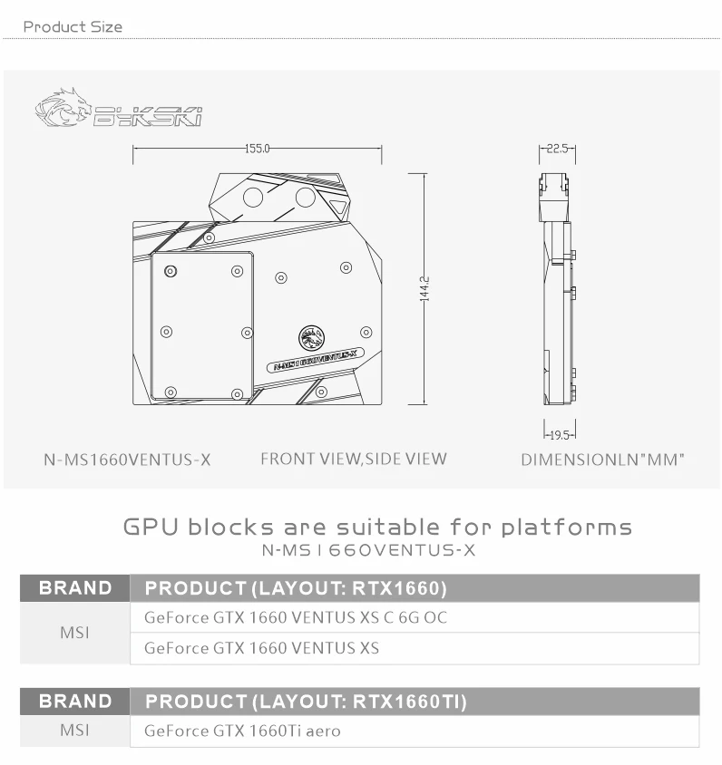 Comprar Bykski-Bloque de agua utilizado para MSI GeForce RTX1660 VENTUS XS 6G OC / RTX 1660Ti AERO/Bloque de radiador de cobre/12V RGB /5V, luz de A-RGB
