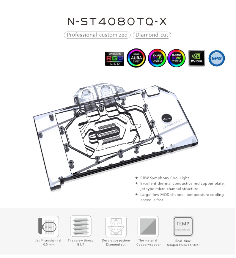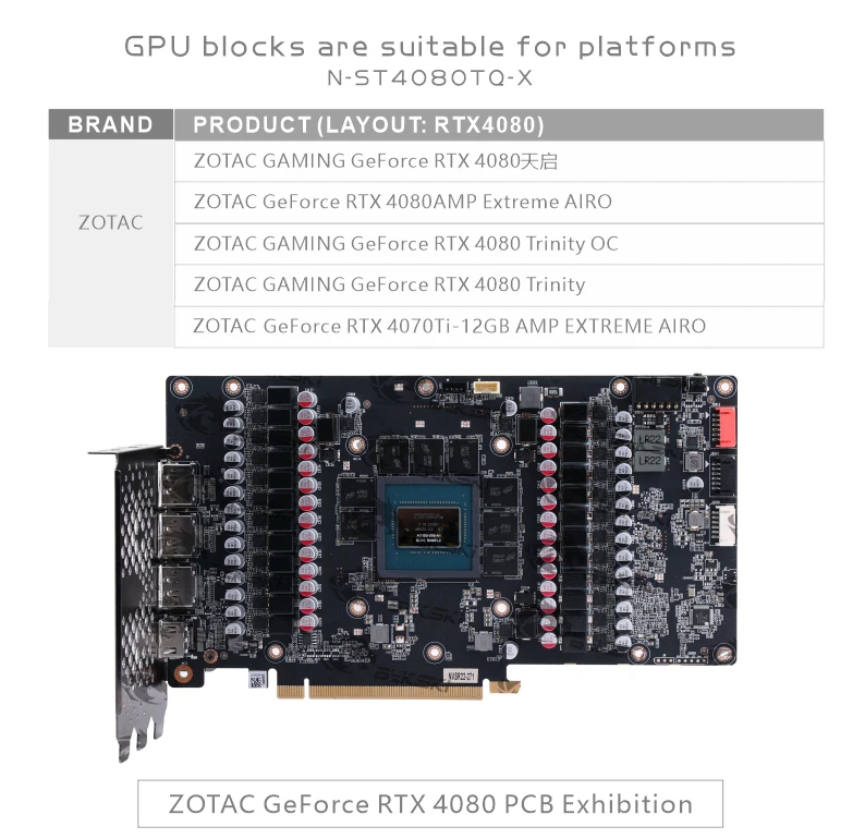 Comprar Bykski-bloque de agua para ZOTAC RTX 4070Ti SUPER / 4080 AMP Extreme AIRO /Trinity GPU Card/radiador de refrigeración de cobre/N-ST4080TQ-X