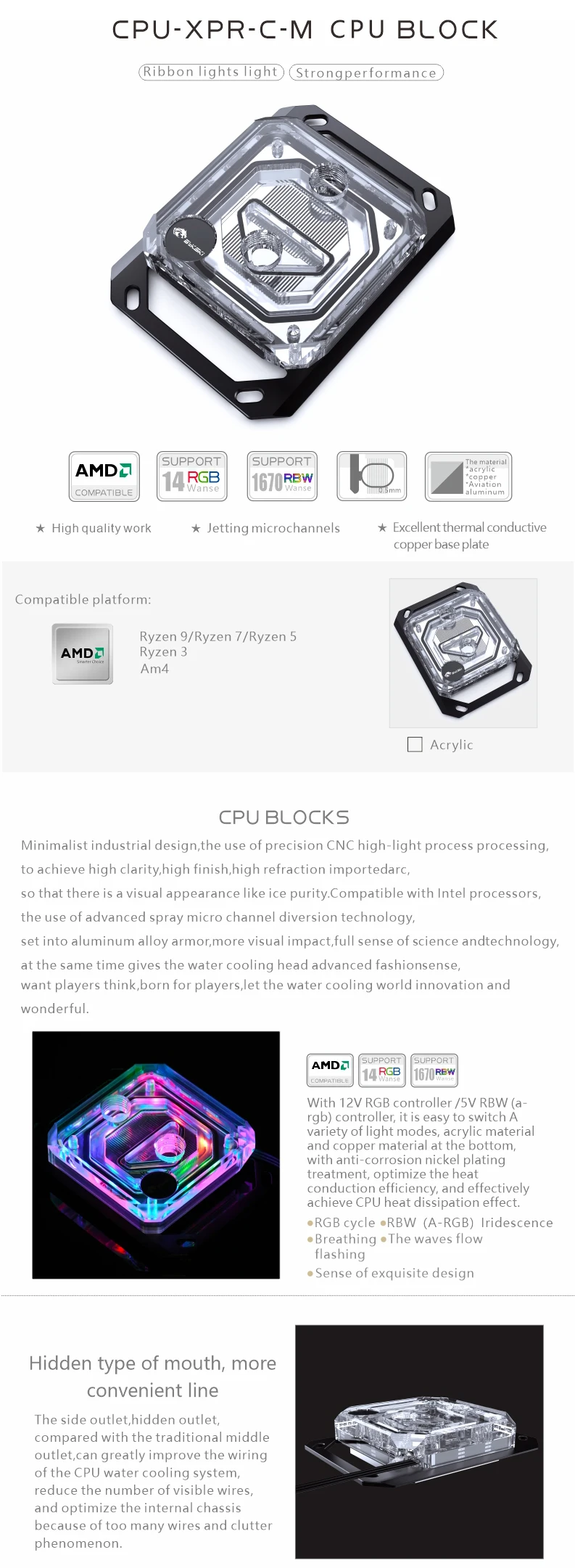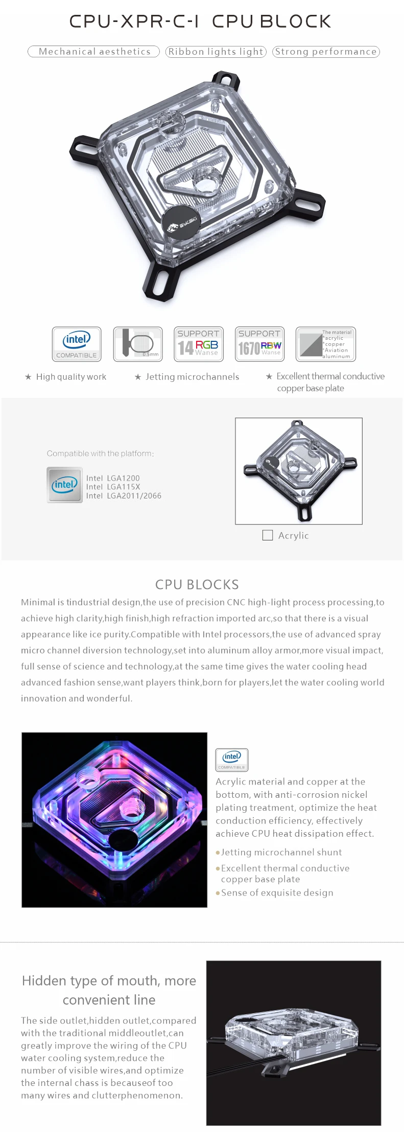 Comprar Bykski-Bloque de CPU para INTEL LGA115X 1200 1700 2011 /AMD Ryzen 3/5/7 X470 X570, enfriador de agua, radiador, CPU-XPR-C-M/CPU-XPR-C-I