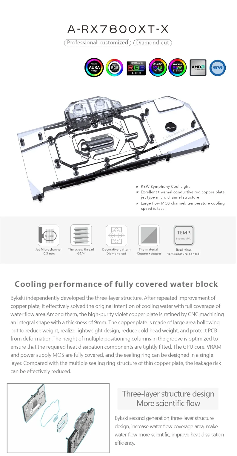 Comprar Bykski-Bloque de GPU para AMD Radeon RX7800XT, edición de referencia, tarjeta de vídeo, refrigeración por agua/cubierta completa/A-RX7800XT-X de radiador de cobre