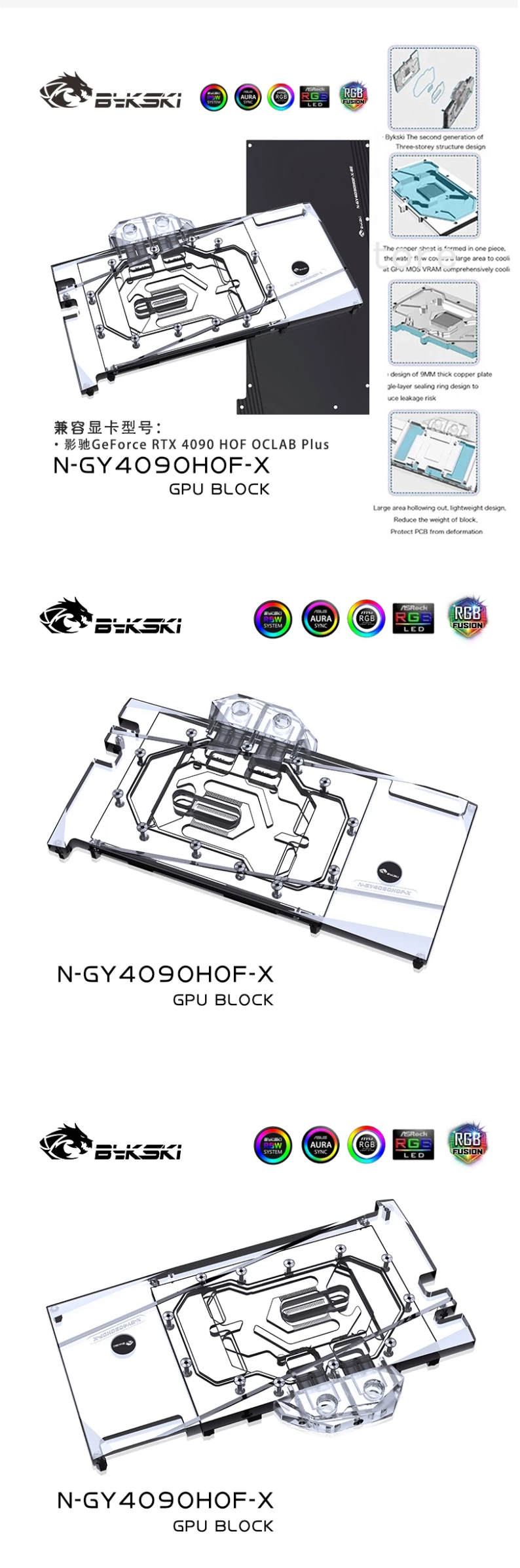Comprar Bykski-Bloque de GPU de cubierta completa, refrigerador de radiador de refrigeración por agua para GALAXY RTX 4090, RoF OCLAB Plus, tarjeta de vídeo, N-GY4090HOF-X