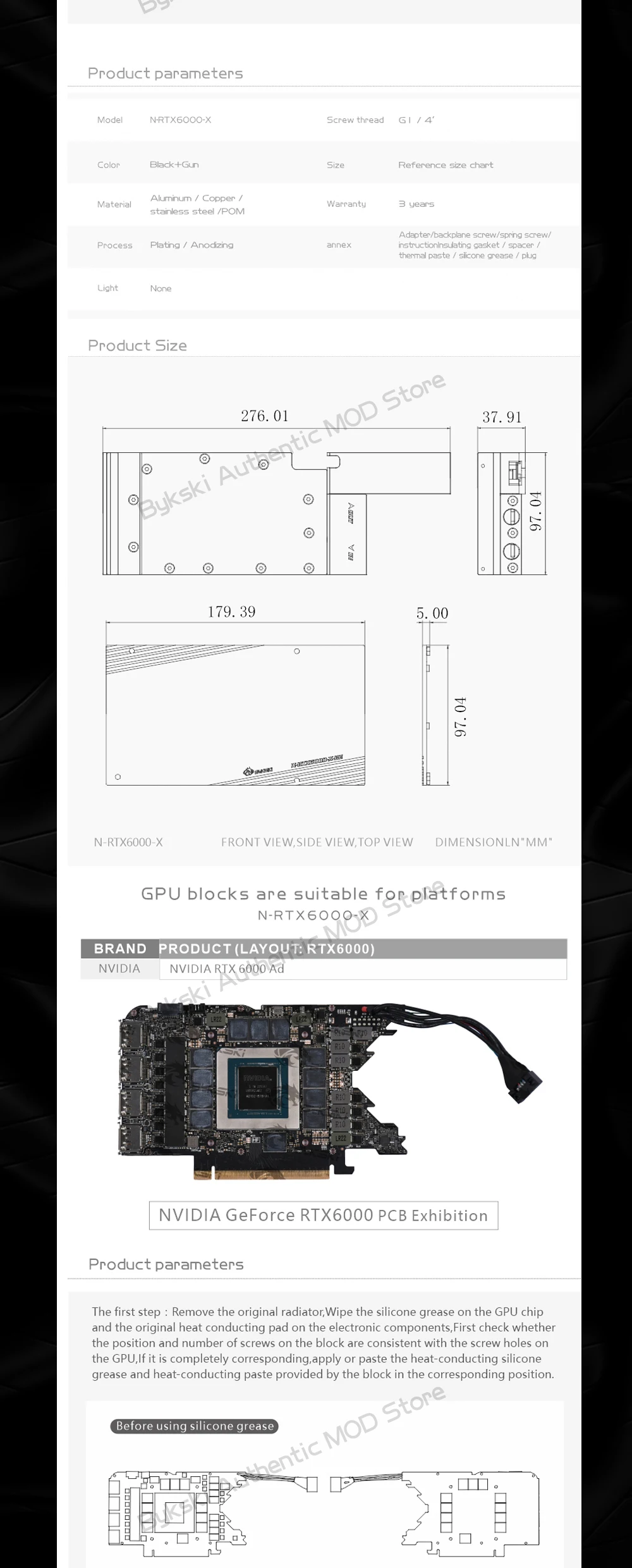 Comprar Bykski-Bloque de GPU NVIDIA para tarjeta gráfica RTX 6000Ad, refrigeración líquida, Enfriador de agua, radiador de cobre VGA, cubierta de Metal, N-RTX6000-X
