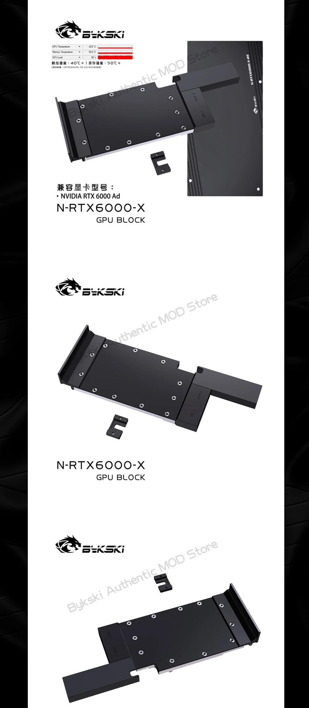 Bykski-Bloque de GPU NVIDIA para tarjeta gráfica RTX 6000Ad, refrigeración líquida, Enfriador de agua, radiador de cobre VGA, cubierta de Metal, N-RTX6000-X