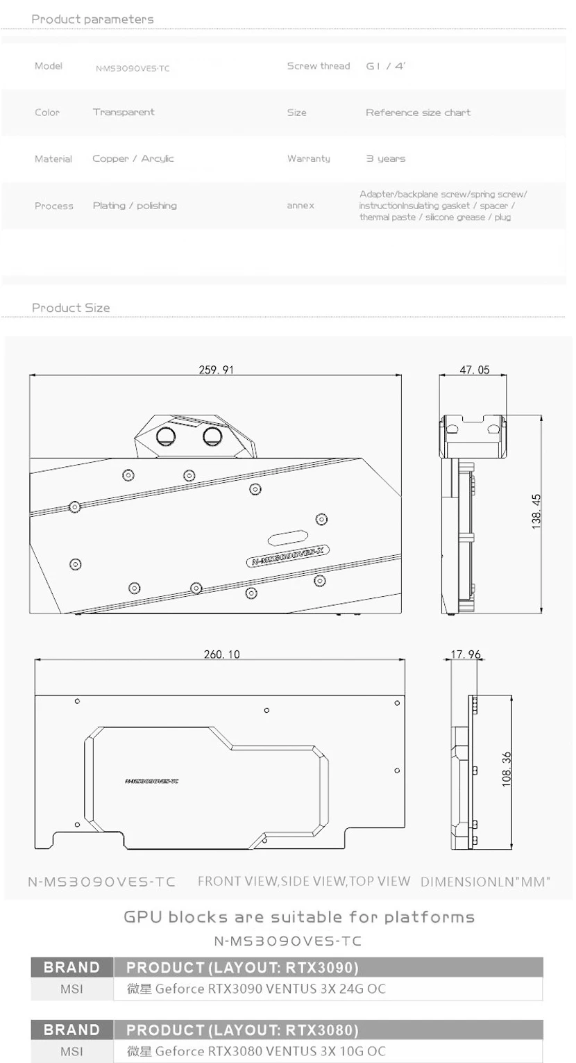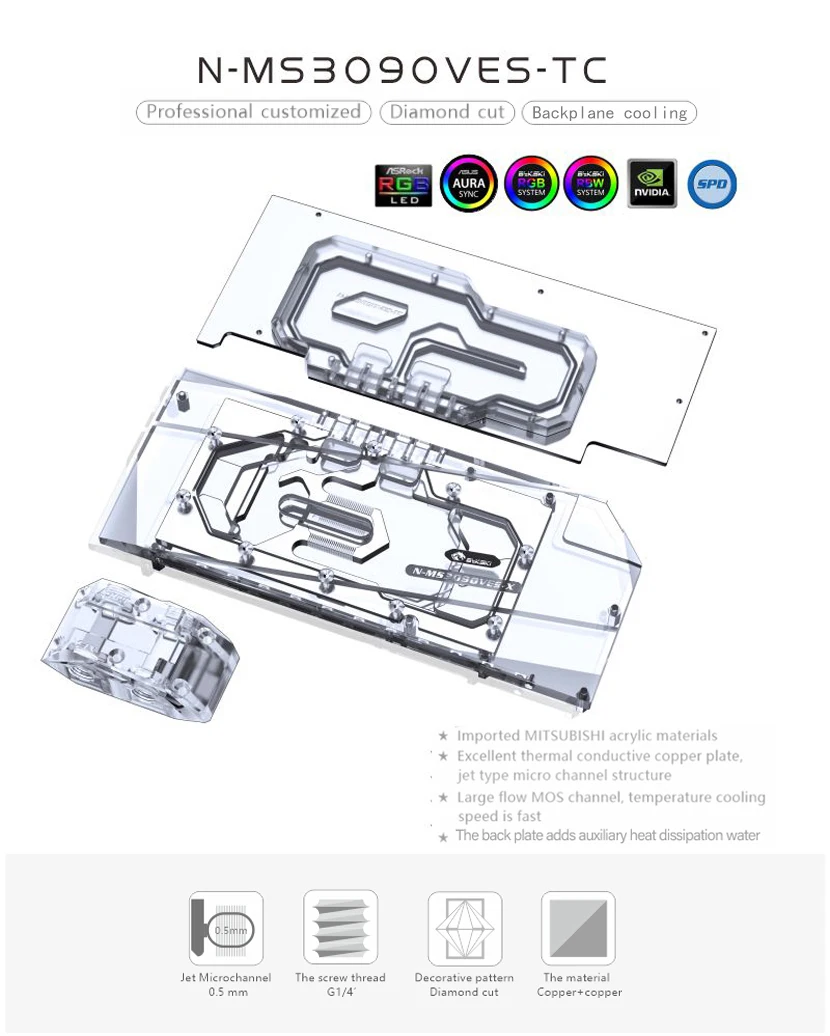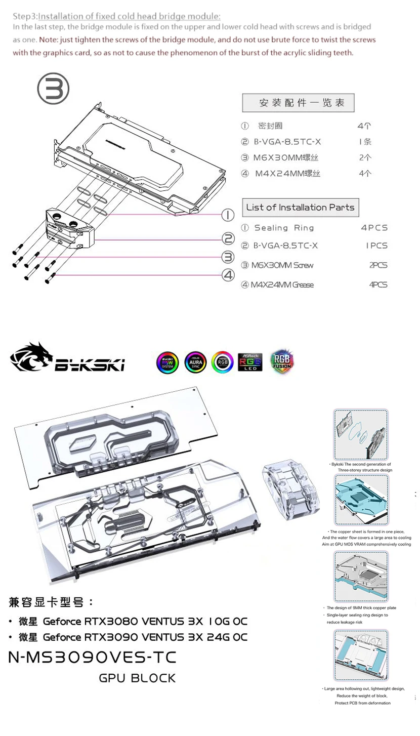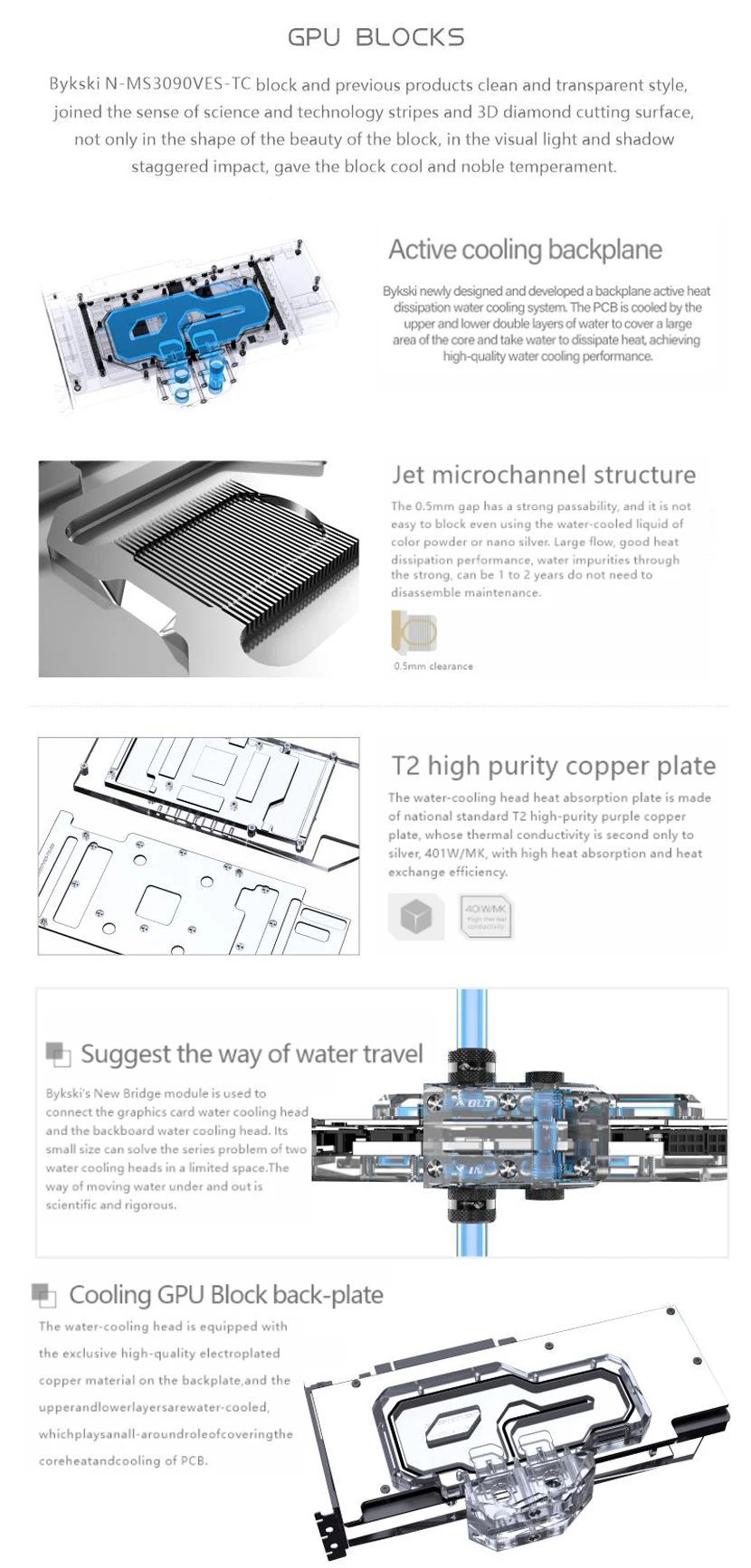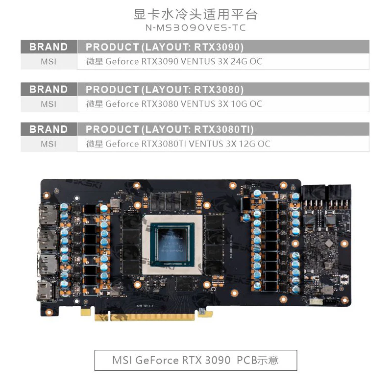 Comprar Bykski-Bloque de placa trasera activa GPU para RTX 3080 3090 VENTUS 3X 10G OC, tarjeta gráfica, Memoria trasera (VRAM) VGA Cooler MS3090VES-TC