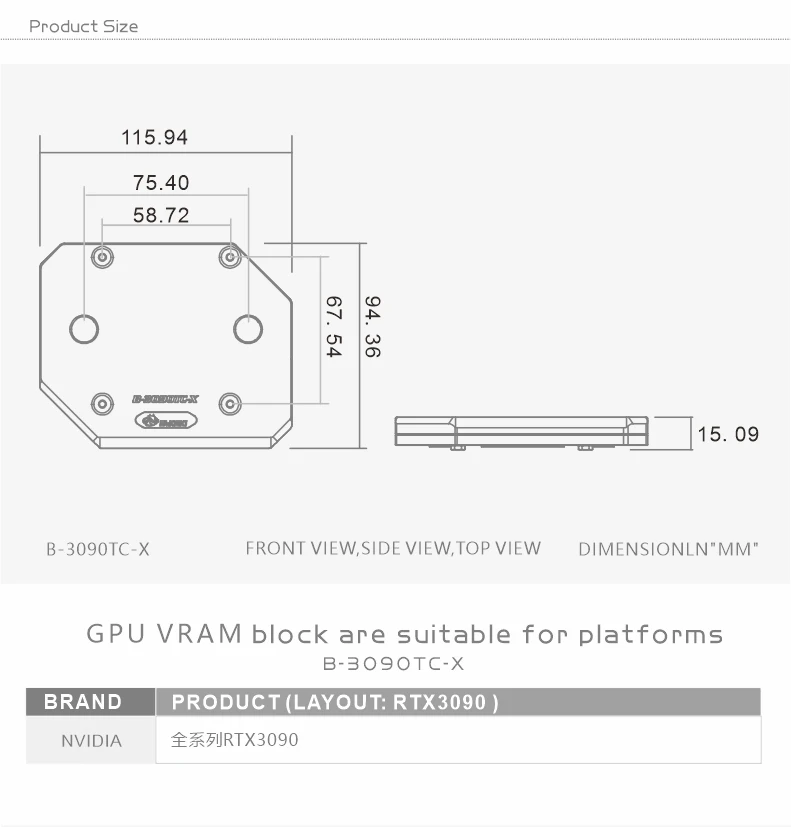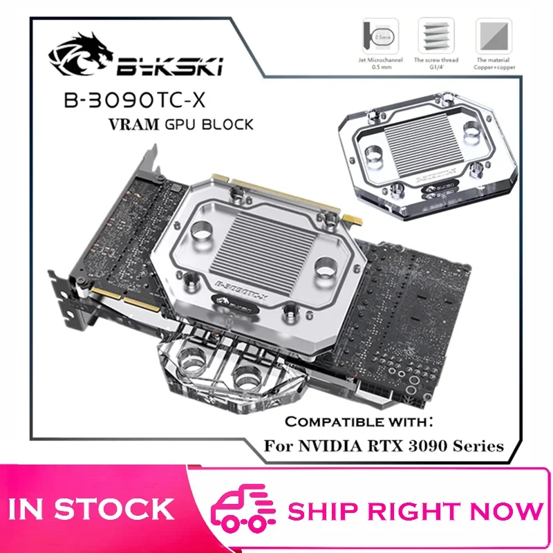 Bykski GPU Active Backplate Block Universal para NVIDIA RTX 3090 Series, minería PCB Backside GDDR6 VRAM VGA Cooler B-3090TC-X
