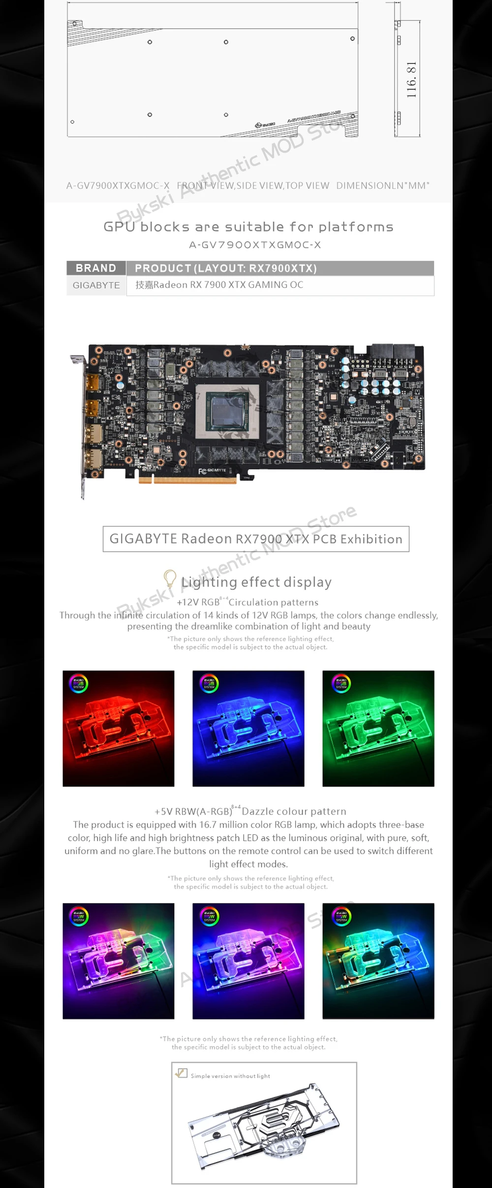 Comprar Bykski-Bloque de refrigeración por agua para Gigabyte AMD Radeon RX 7900 XTX Gaming OC, tarjeta gráfica, enfriador líquido VGA, A-GV7900XTXGMOC-X