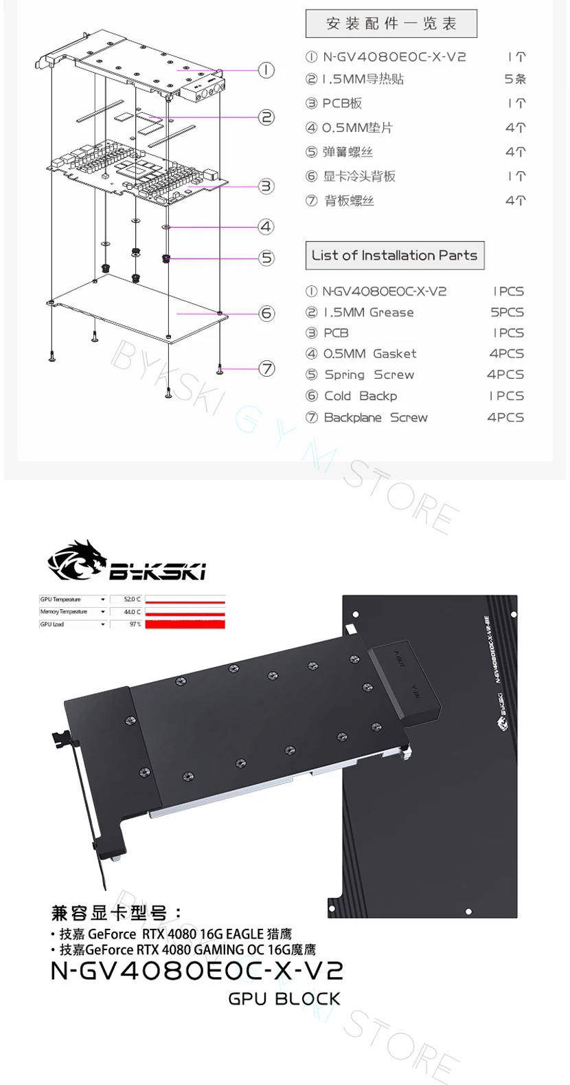 Comprar Bykski-Bloque de refrigeración por agua para GIGABYTE GeForce RTX 4080, enfriador líquido con placa trasera, 16G EAGLE GPU, N-GV4080EOC-X-V2,RTX 4080