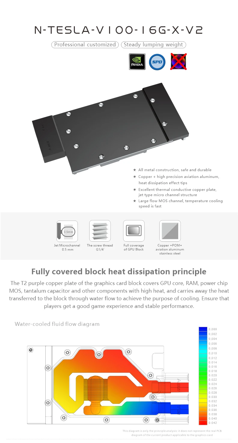 Bykski-Bloque de refrigeración por agua GPU para NVIDIA V100, 16GB, tarjeta de vídeo FHHL, radiador enfriador líquido VGA