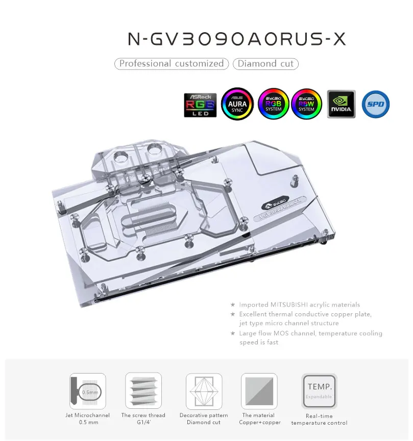 Comprar Bykski-Bloque de tarjeta gráfica para Gigabyte RTX3090 3080 AORUS,GPU Liquid Cooler 5V A-RGB/12V RGB M/B SYNC N-GV3090AORUS-X