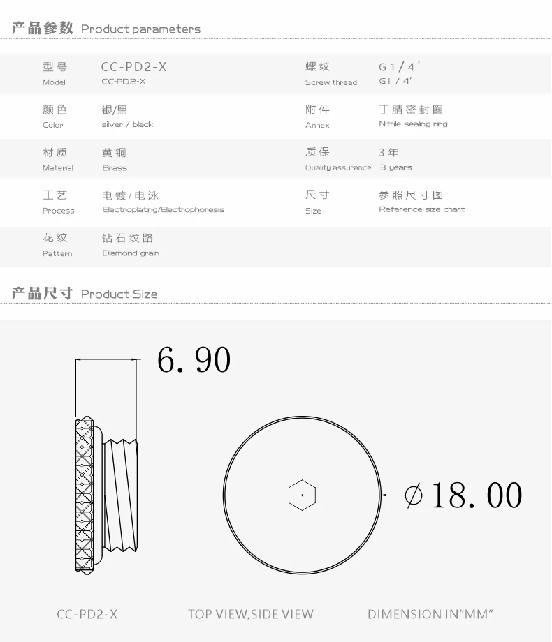 -Rosca: G1/4 "BSP; 4,5mm de longitud de rosca macho