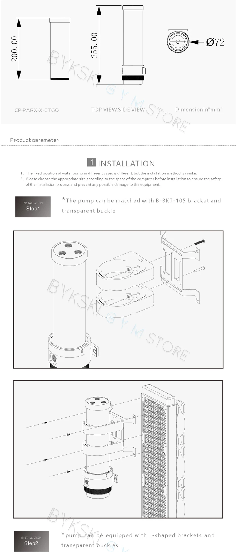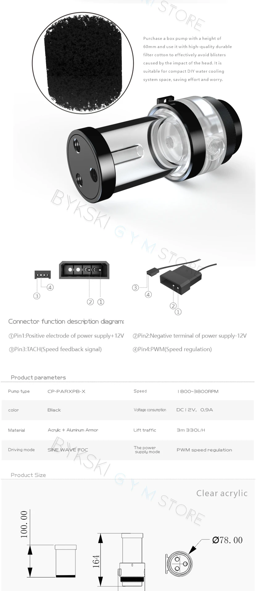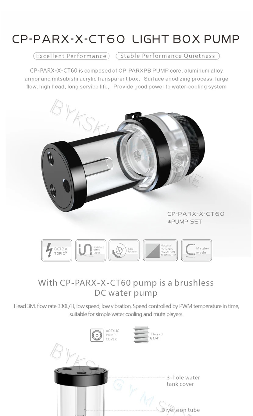 Comprar Bykski-bomba de agua de 60/100/150/200mm + Combo de depósito, refrigeración de agua para PC, AIO, tanque de agua, 300L/H, PWMCP-PA-X-CT60-V2