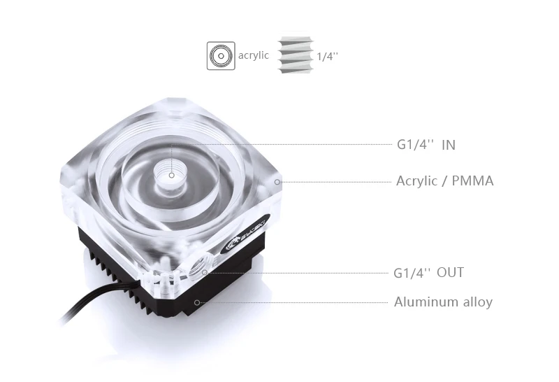 Comprar Bykski-bomba DDC 12V 10W, elevador de flujo máximo, 3 metros, 300l/H, tamaño del radiador, 70x70x53mm, soporte Combo de depósito/Control de velocidad PWM