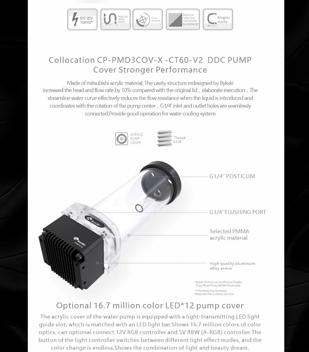 Comprar Bykski-bomba de refrigeración por agua para PC, dispositivo de 5V ARGB AIO DDC con depósito, RGB de 12V, Res Combo PWM, elevación de 6 metros, flujo de 700L/H,60/100/150/200MM