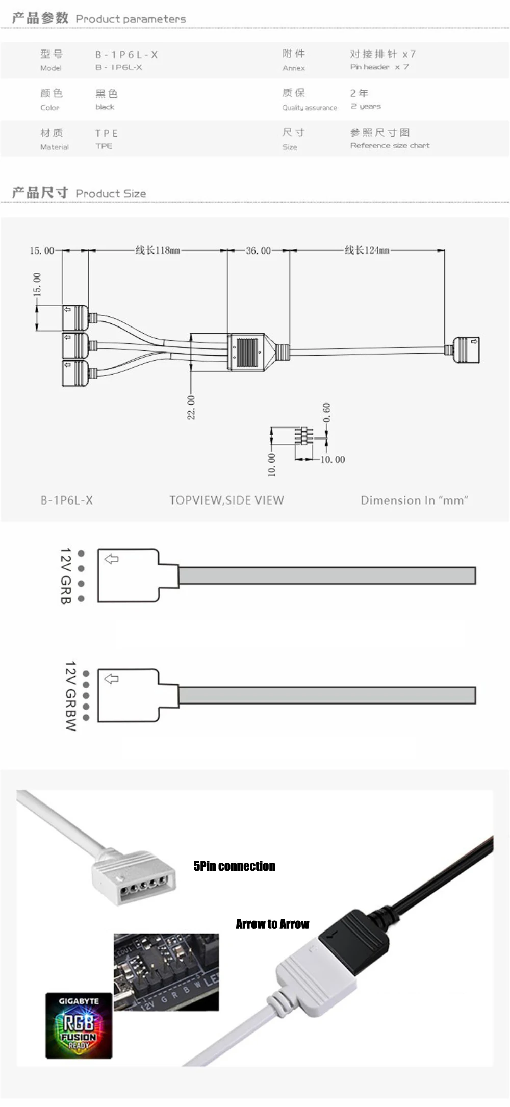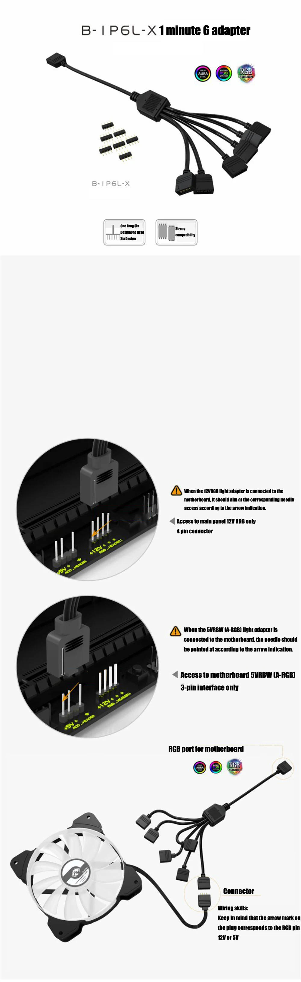 Comprar Bykski-Cable de A-RGB divisor RGB 1-6, Cable AURA SYNC 5V/12V, adaptador Caple, puertos de expansión, cabezales RGB adicionales, B-1P6L-X de extensión de 1TO6 vías