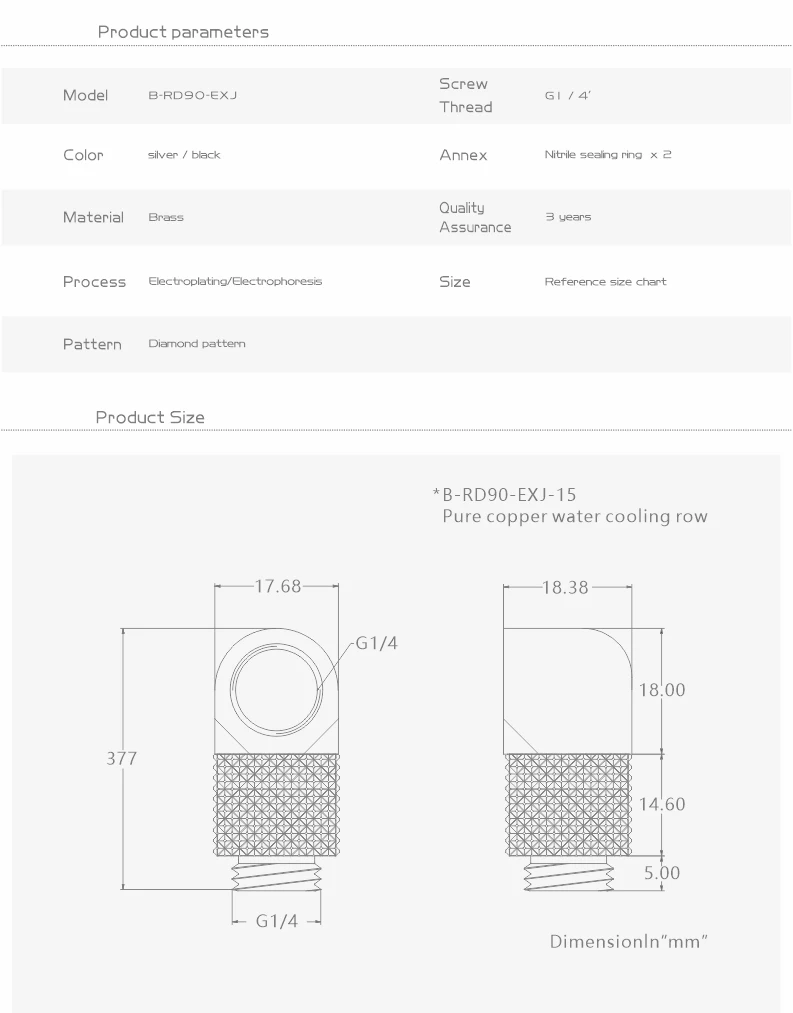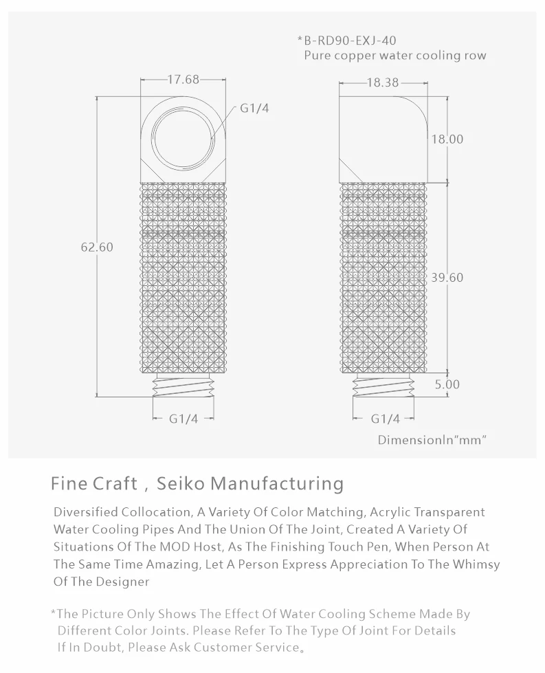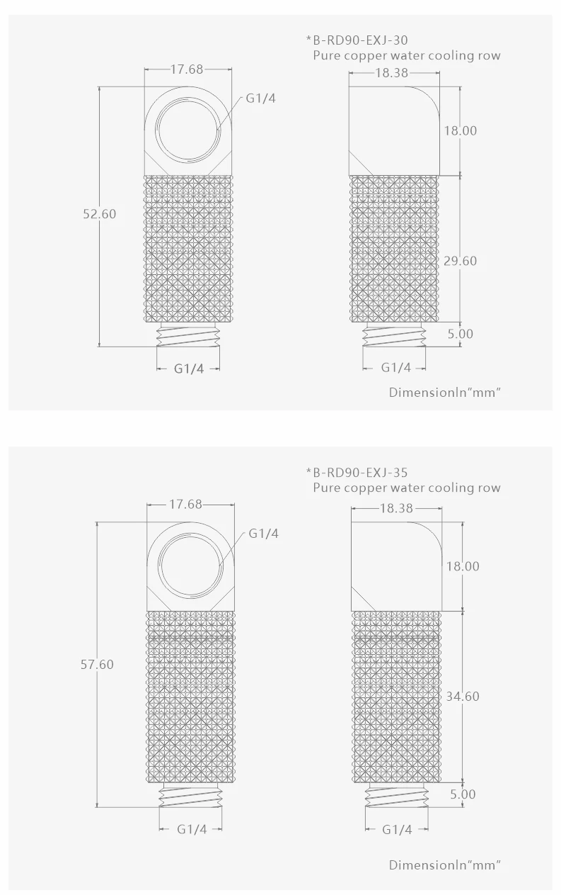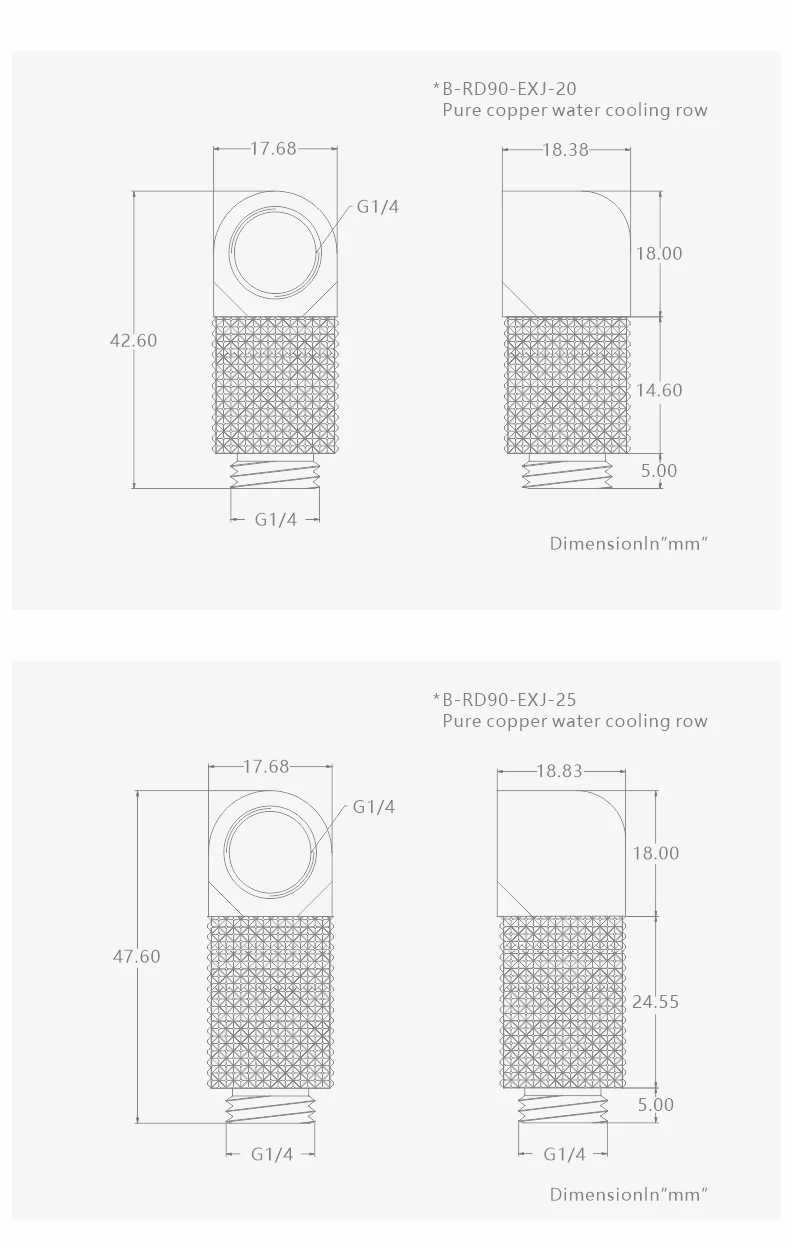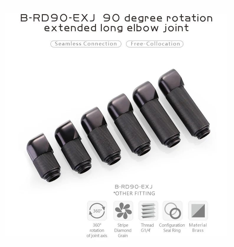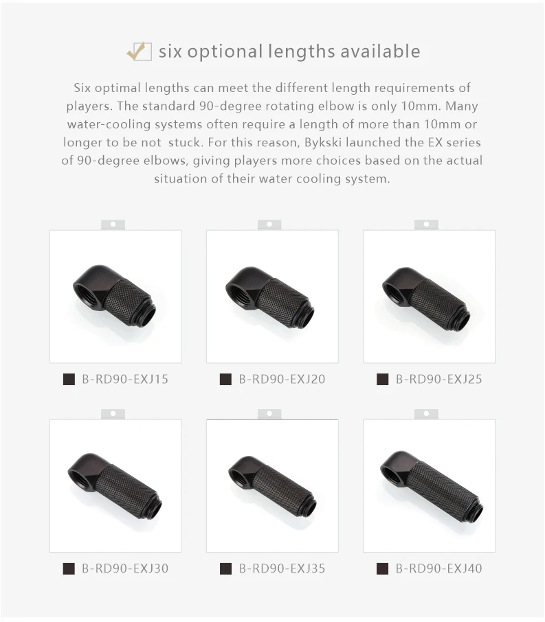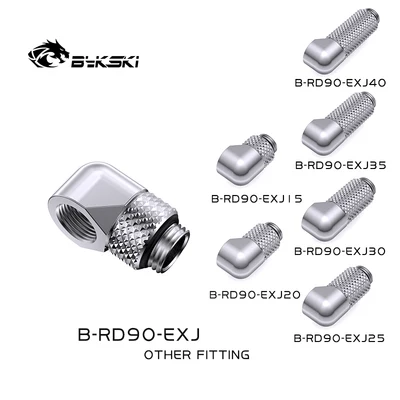BYKSKI B-RD90-EXJ,Male to Female 90 Degree Rotary Fitting Extender Elbow G1/4'' PC Water Cooling Connector 15/20/25/30/35/40mm