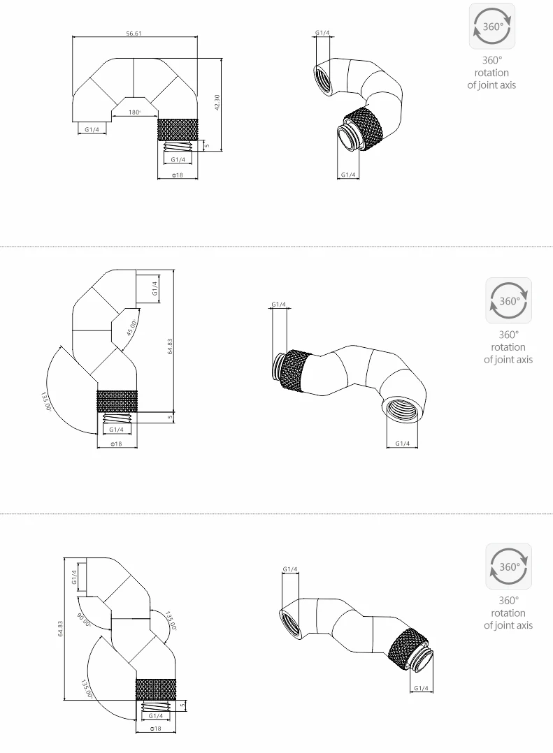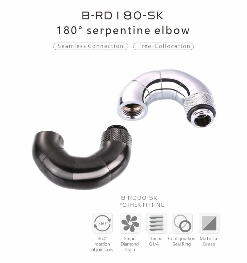 Comprar Bykski-codo giratorio de 90/180 grados con ajuste en ángulo de serpiente, Conector de refrigeración por agua G1/4, rosca de F-M, B-RD90-SK