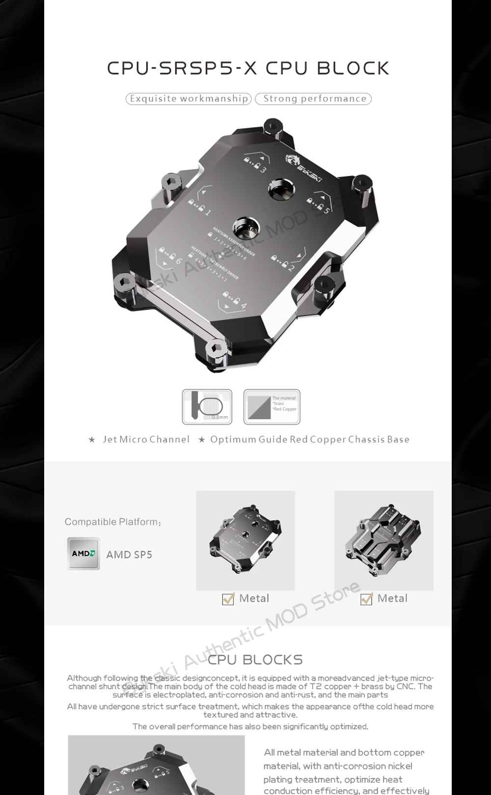 Comprar Bykski-CPU-SRSP5-X AMD SP5 CPU Waterblock Server AI Coud, refrigeración por agua, 0,3mm, Full Metal