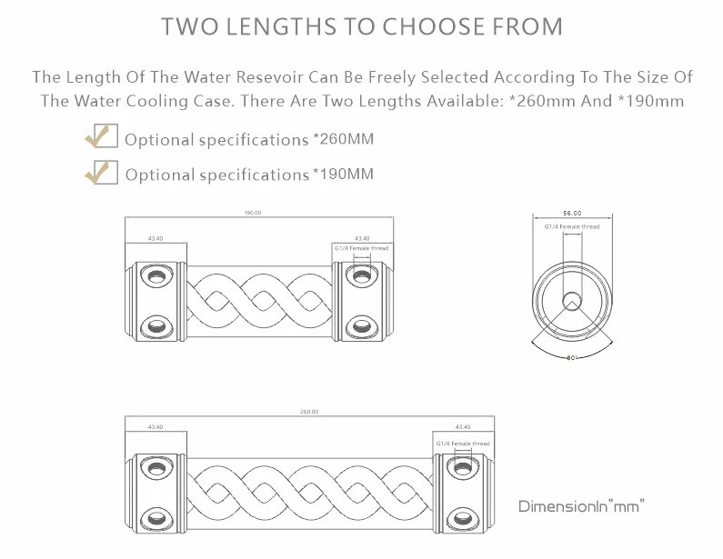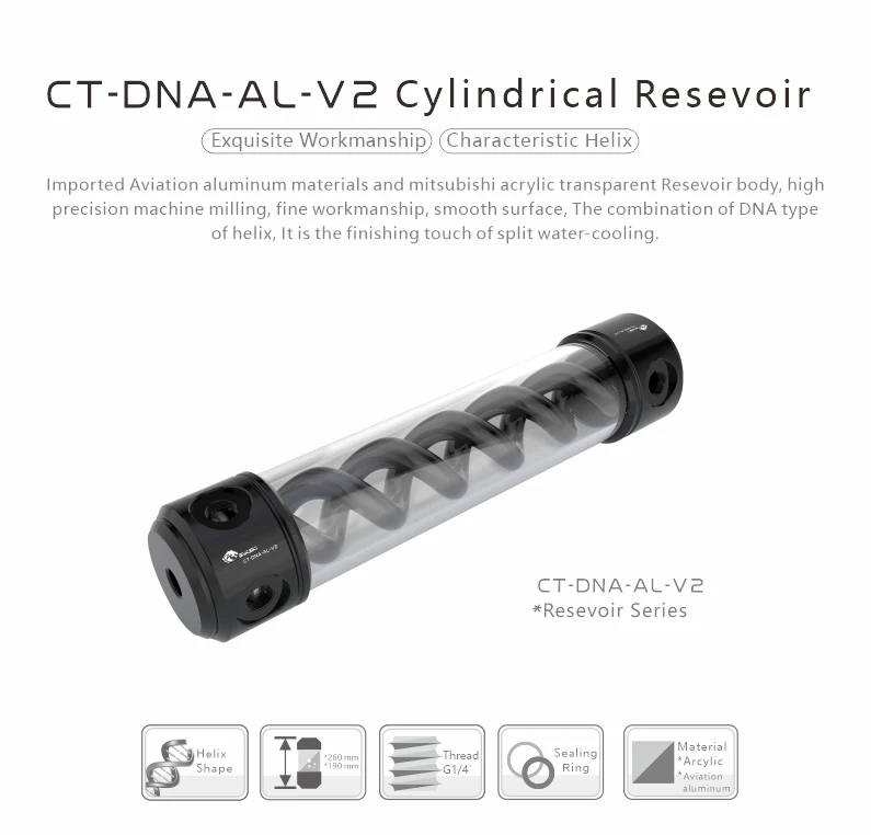 Comprar Bykski CT-DNA-AL-V2, Reservos cilíndricos de ADN de aluminio OD 50MM Res, tanques de agua en espiral de refrigeración por PC 190mm-260mm