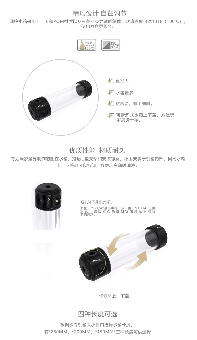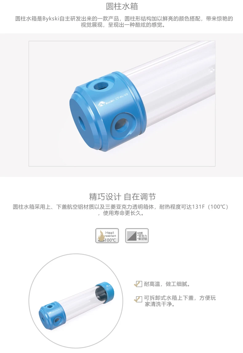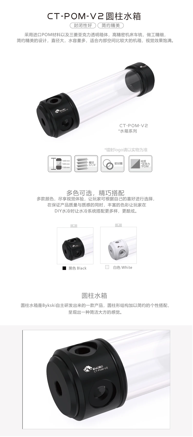 BYKSKI-cubierta de depósito de tanque refrigerado por agua, doble cilindro, POM acrílico, 150/260/200mm de longitud x 50MM de diámetro, CT-AL-V2/CT-POM-V2