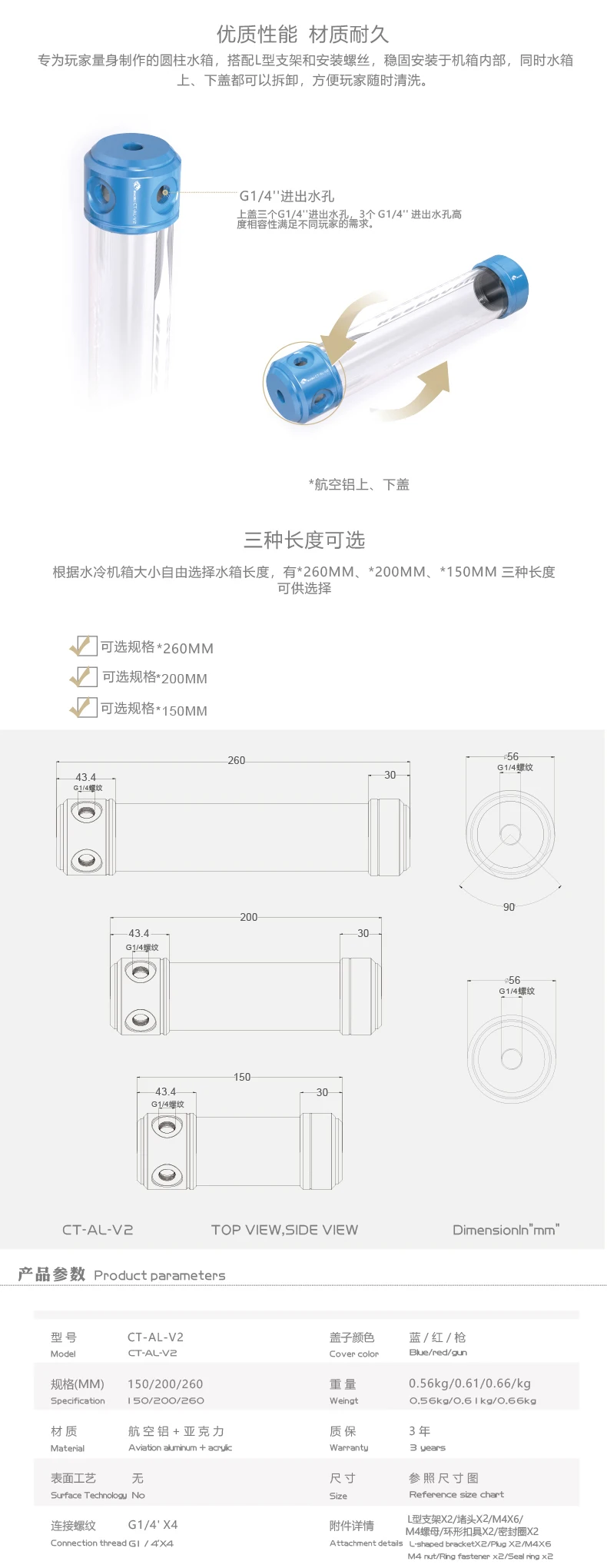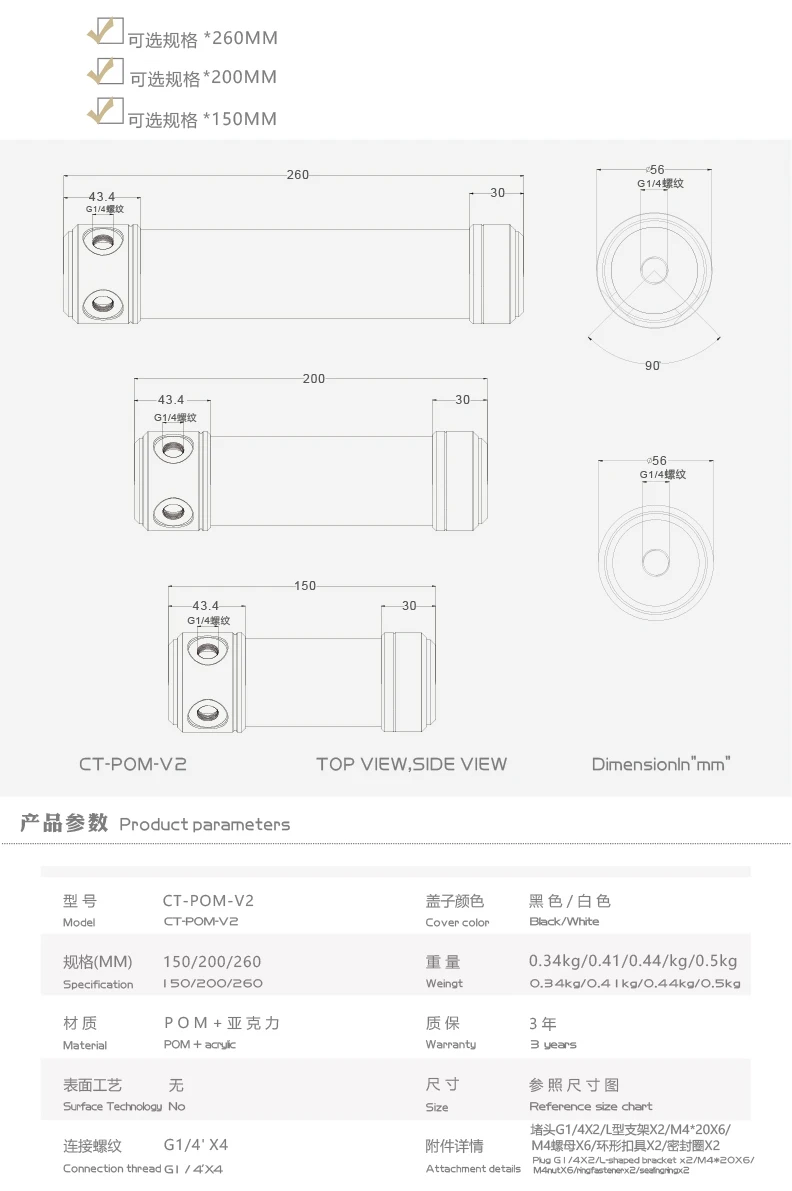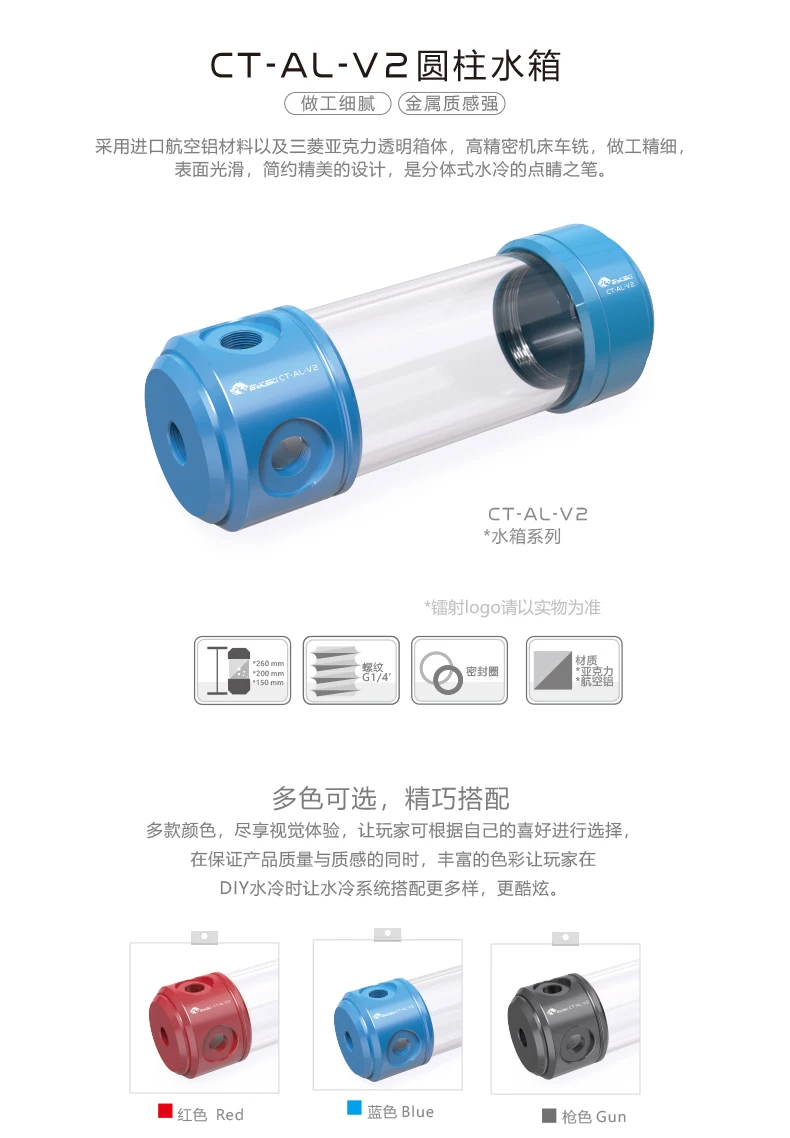 BYKSKI-cubierta de depósito de tanque refrigerado por agua, doble cilindro, POM acrílico, 150/260/200mm de longitud x 50MM de diámetro, CT-AL-V2/CT-POM-V2