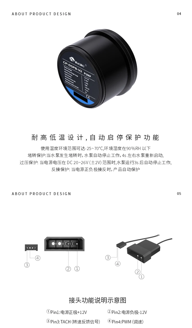 Bykski DC12V 18W D5 bomba PWM velocidad automática flujo máximo elevación 4,5 metros 720L/H TACH retroalimentación rotacional eje cerámico CP-D5PB-V2