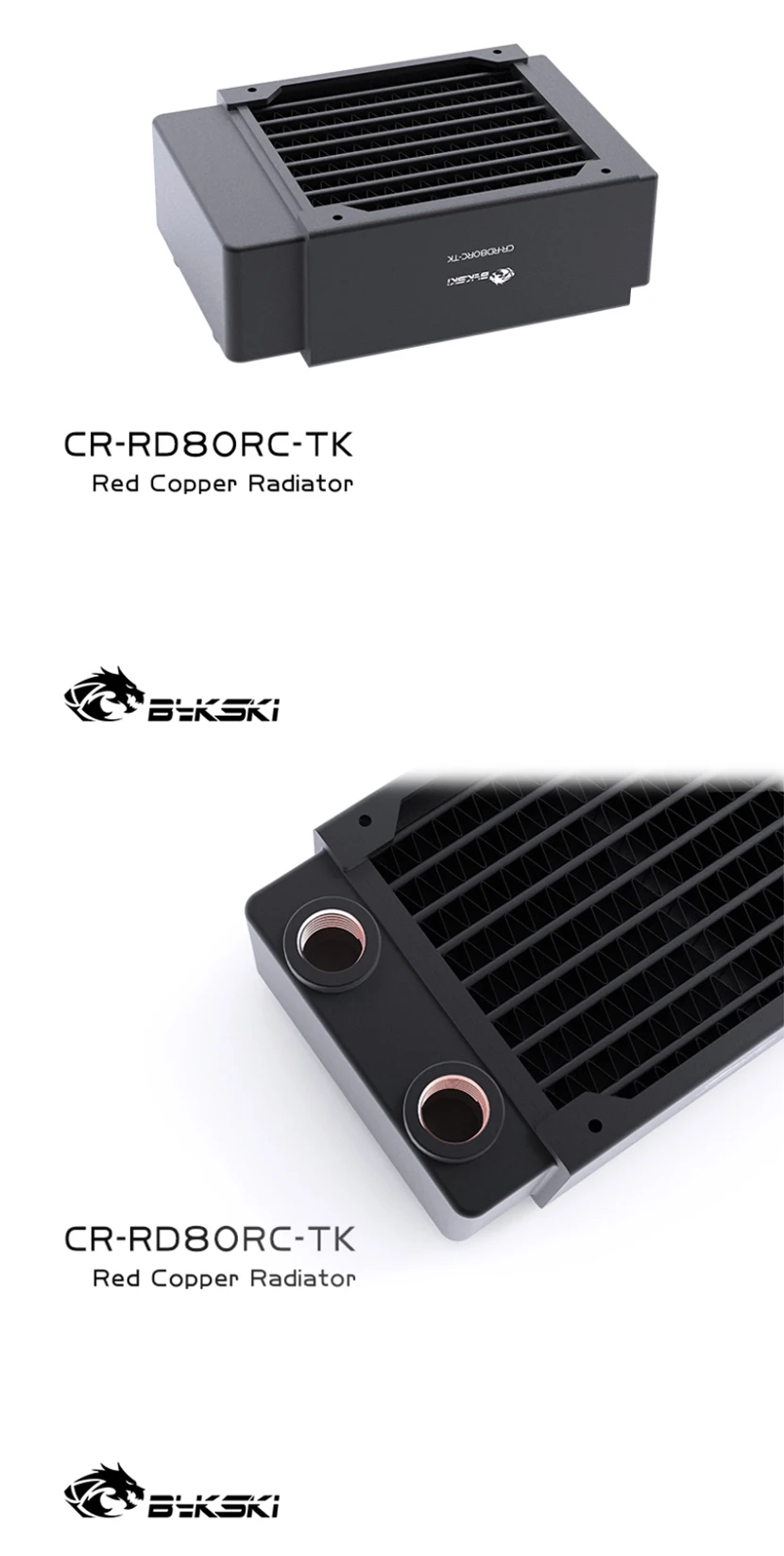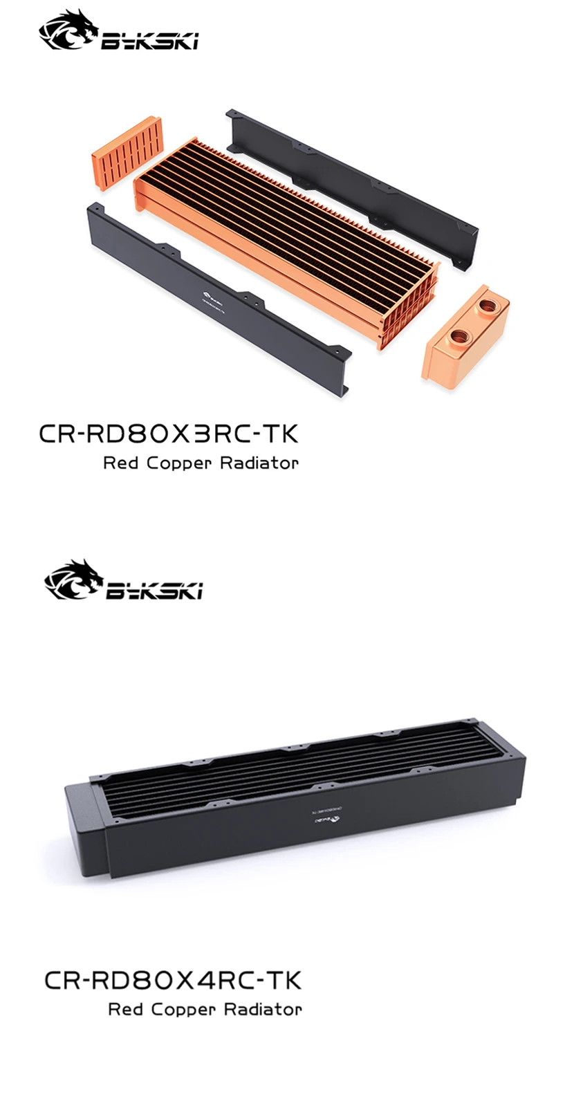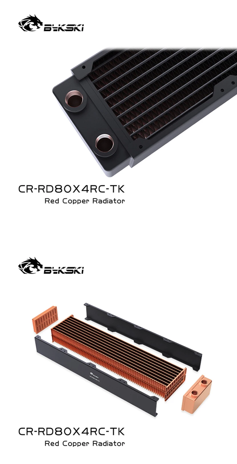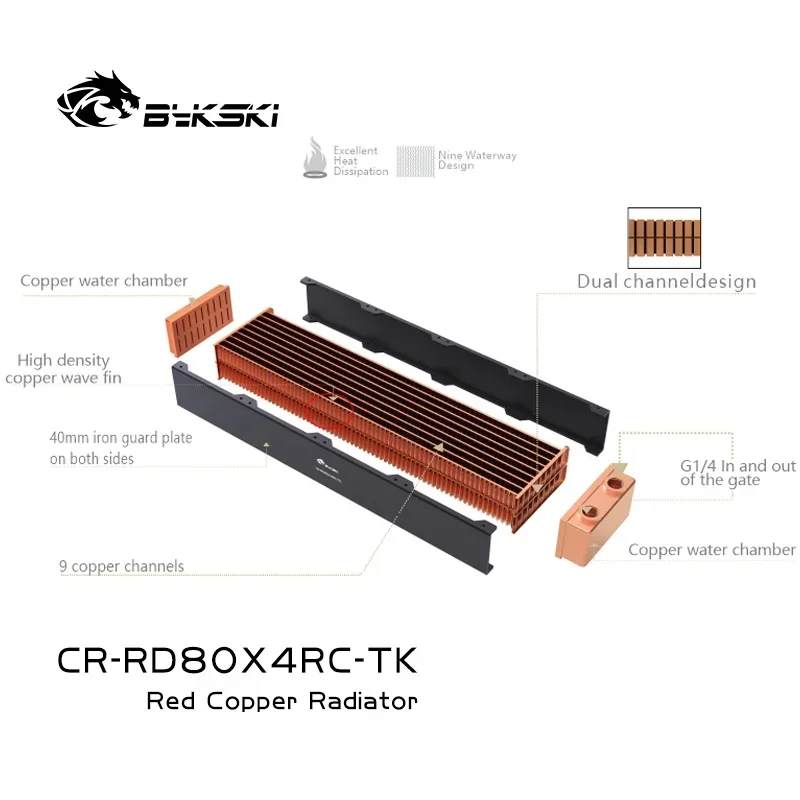 Bykski disipación de calor del radiador de refrigeración por agua de cobre de alto rendimiento de 40mm de espesor para ventilador de 80mm 80 160 240 320 CR-RD80X4RC-TK