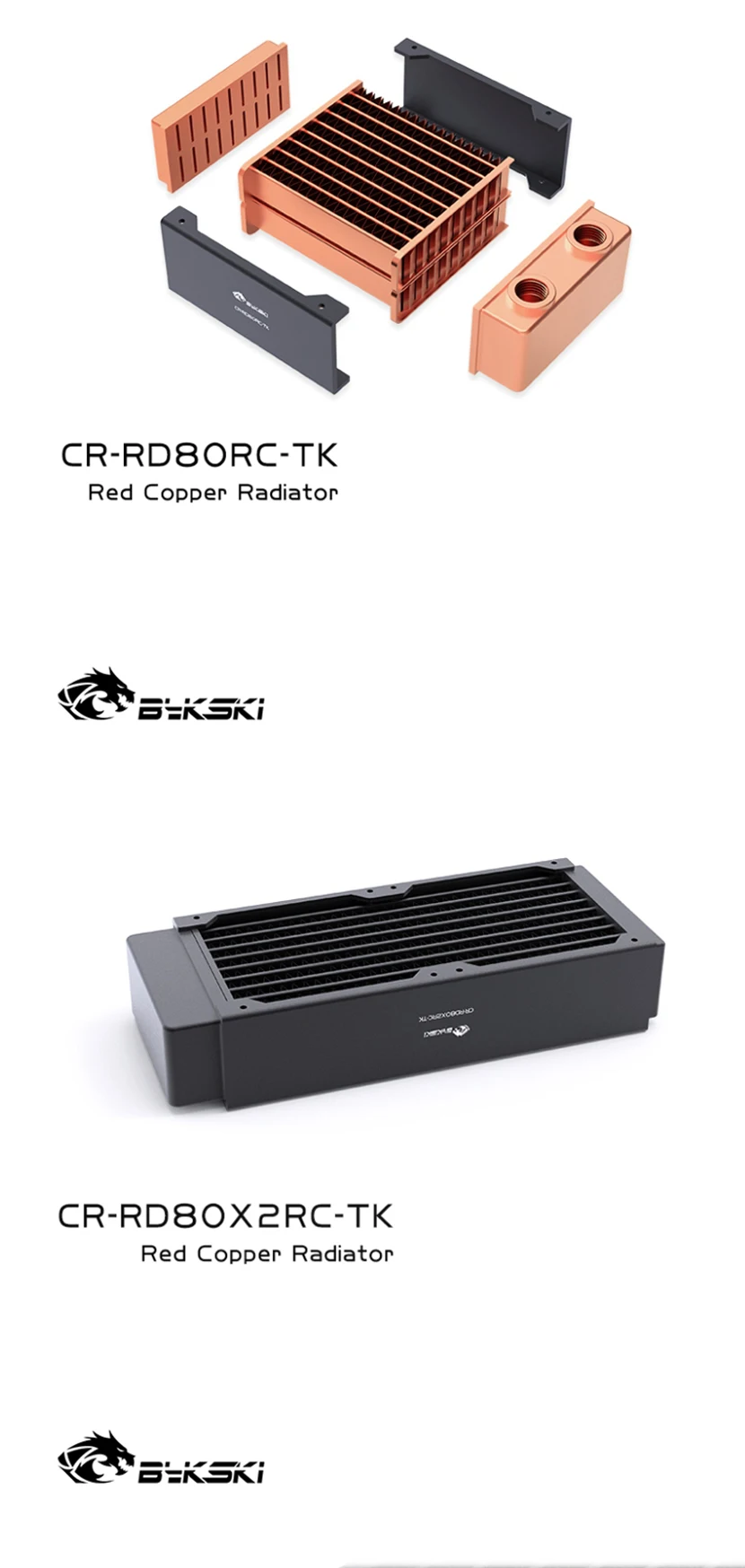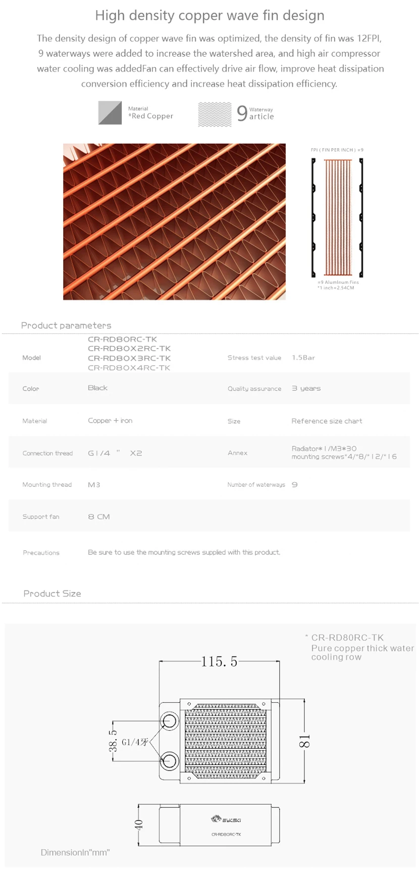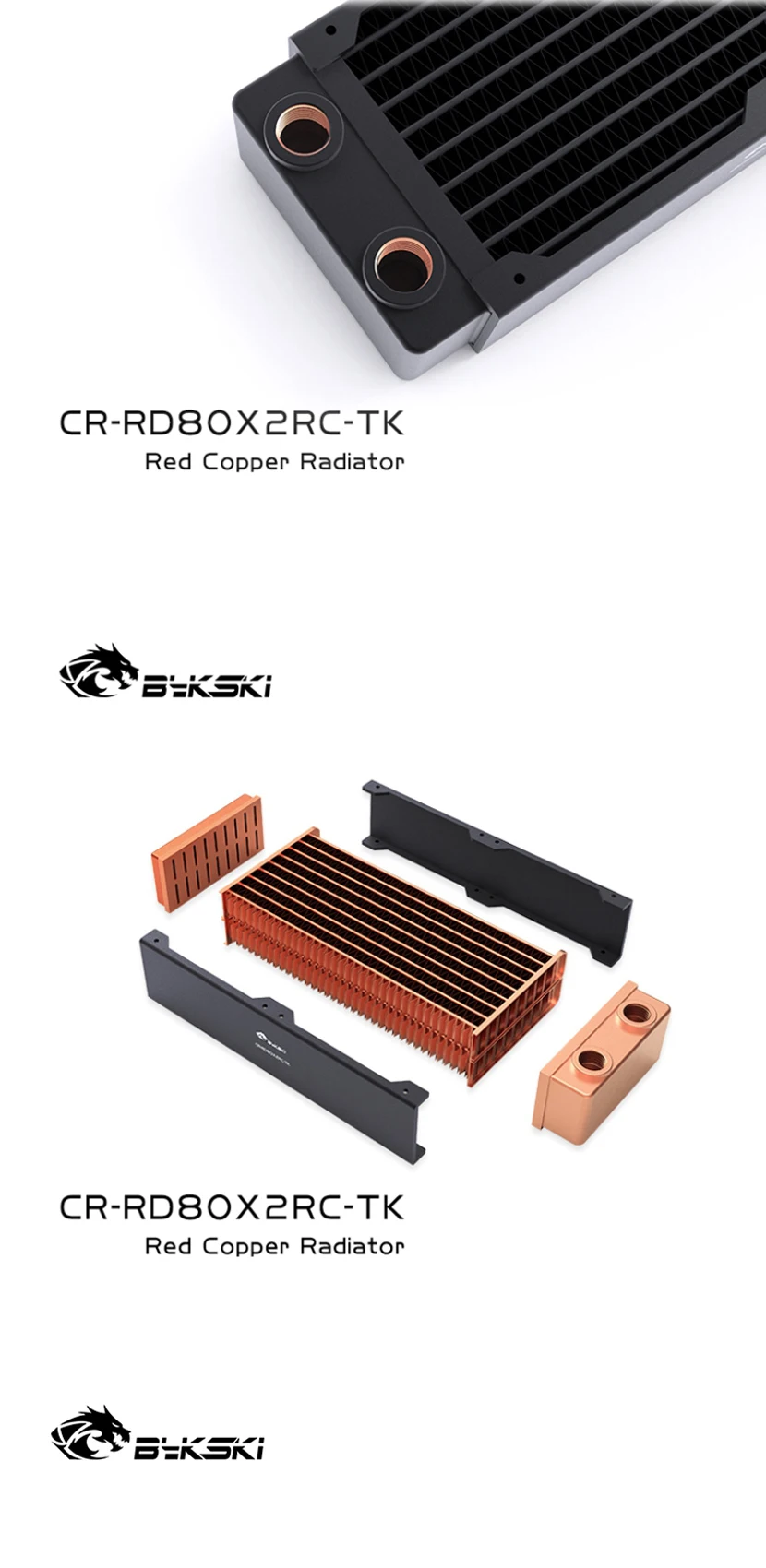 Bykski disipación de calor del radiador de refrigeración por agua de cobre de alto rendimiento de 40mm de espesor para ventilador de 80mm 80 160 240 320 CR-RD80X4RC-TK