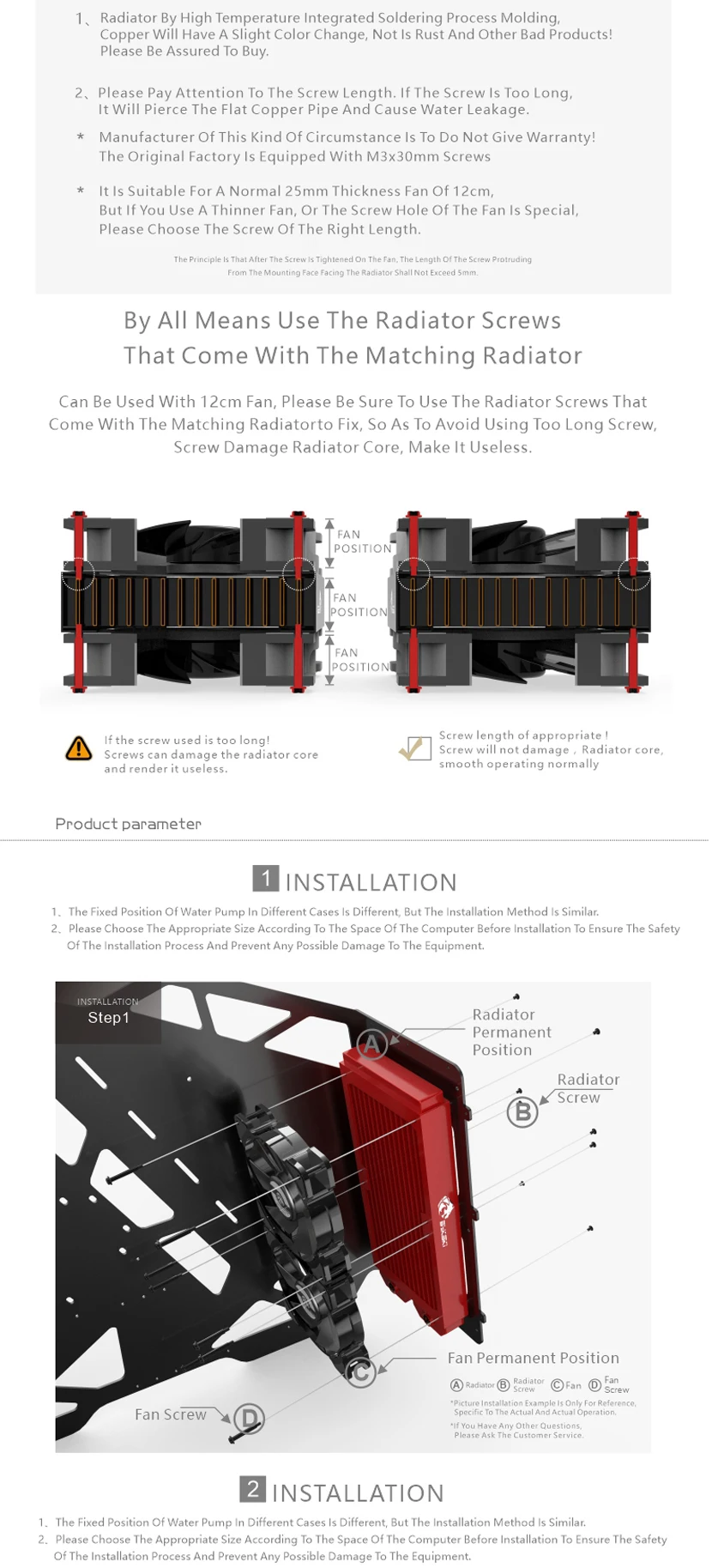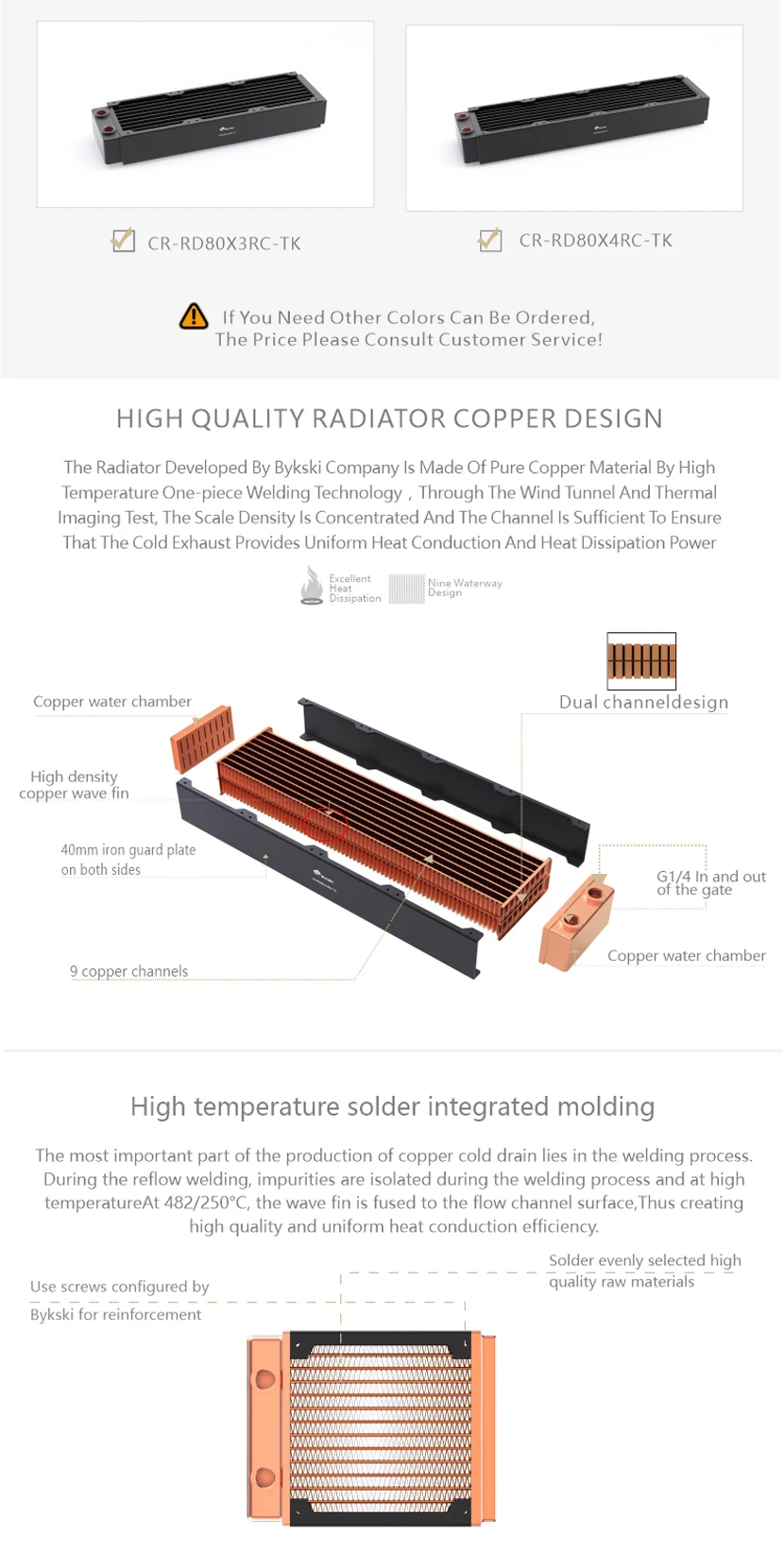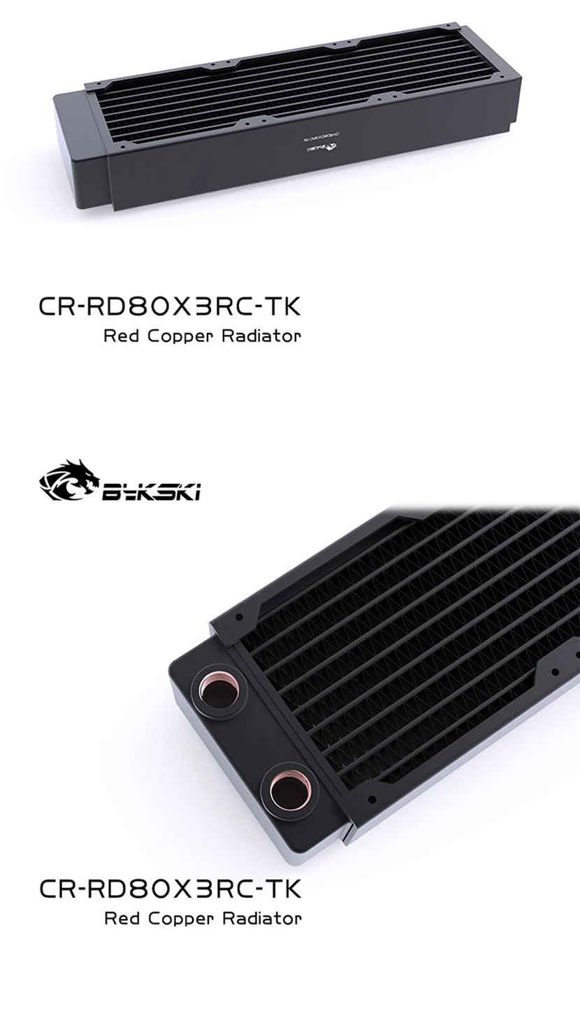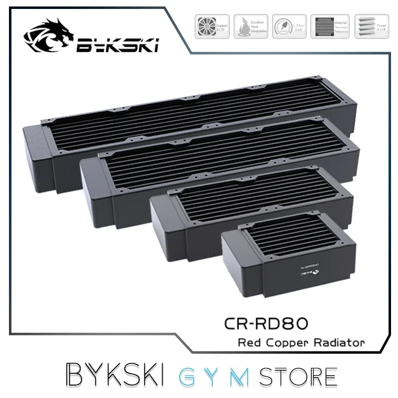 Comprar Bykski disipación de calor del radiador de refrigeración por agua de cobre de alto rendimiento de 40mm de espesor para ventilador de 80mm 80 160 240 320 CR-RD80X4RC-TK