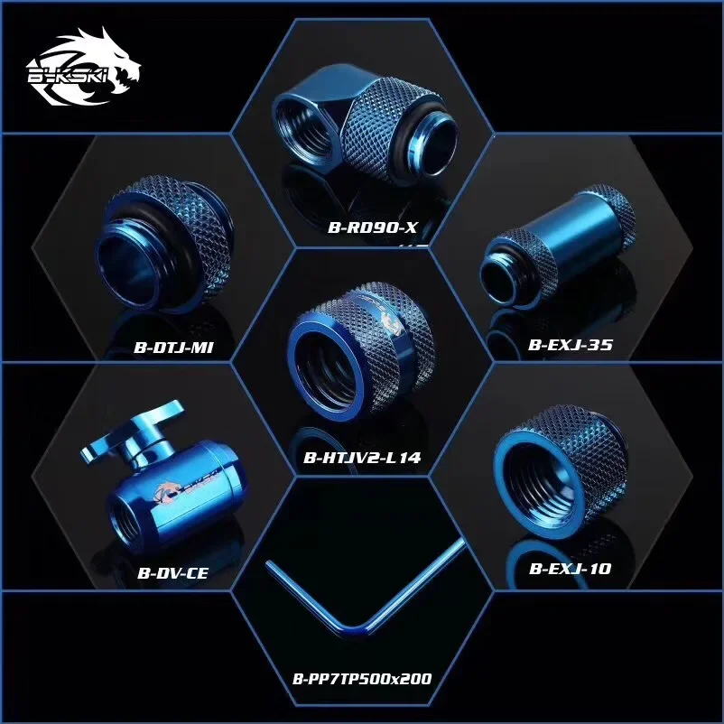 Comprar BYKSKI enchufe G1/4 versión azul, accesorio de manguera, accesorio de tubo duro OD14mm, filtro, termómetro, accesorio giratorio, interruptor de agua