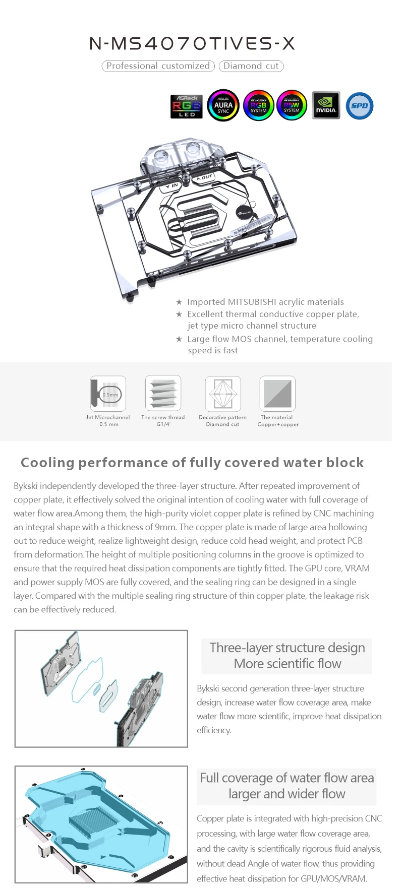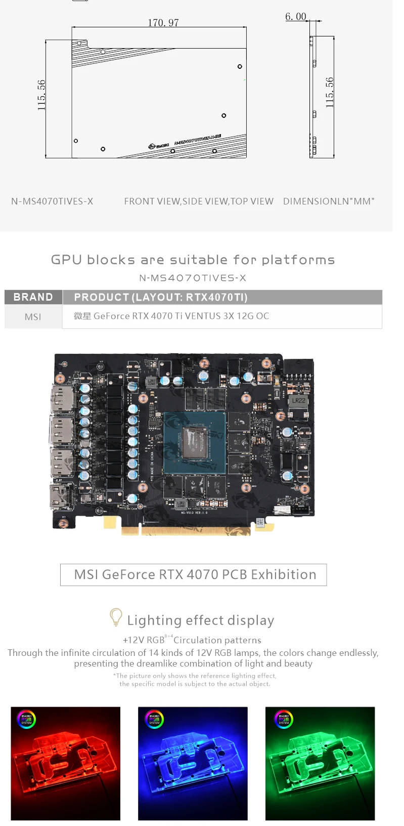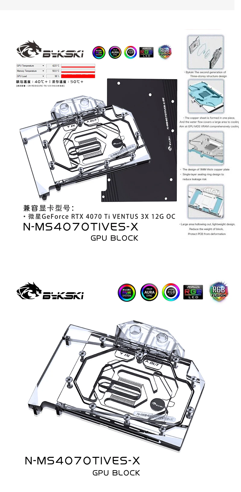 Comprar Bykski-enfriador de agua de bloque de agua MSI RTX 4070Ti Ventus, GPU dedicado, 5V/12V, RGB MB SYNC + placa trasera, N-MS4070TIVES-X