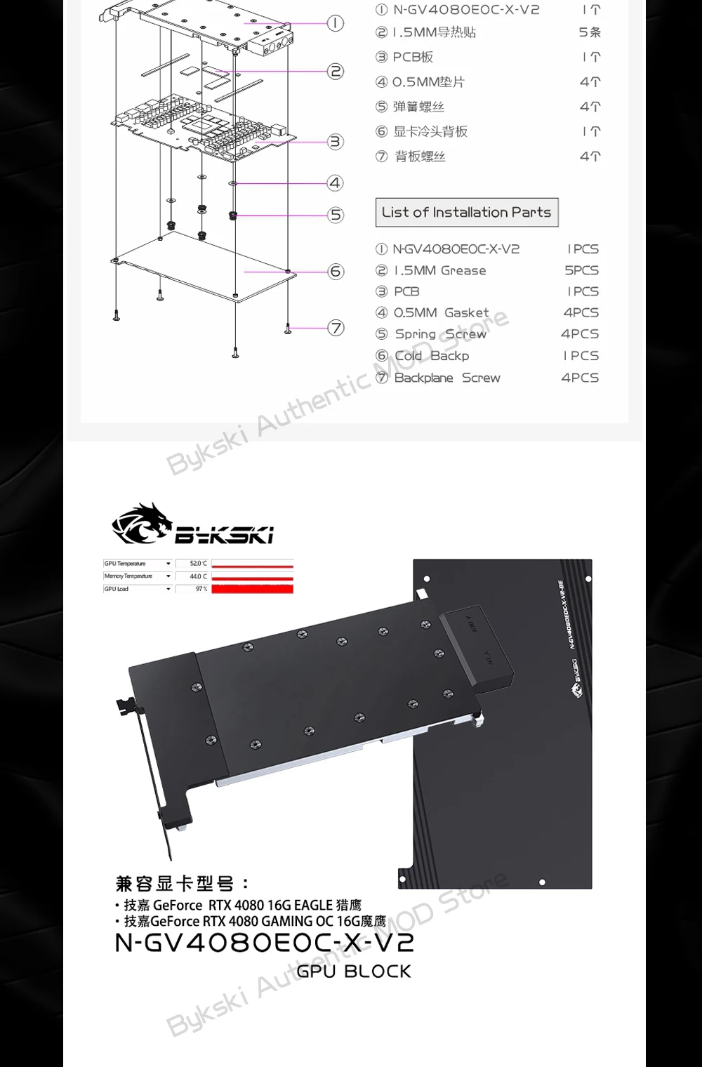 Comprar Bykski-enfriador de agua GPU para GIGABYTE GeForce RTX 4080, 16G EAGLE Graphics, bloque de placa trasera líquida, N-GV4080EOC-X-V2