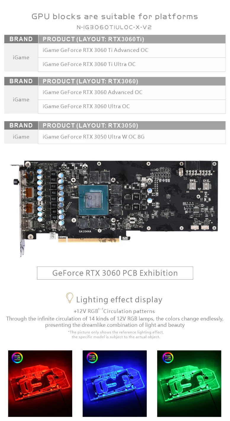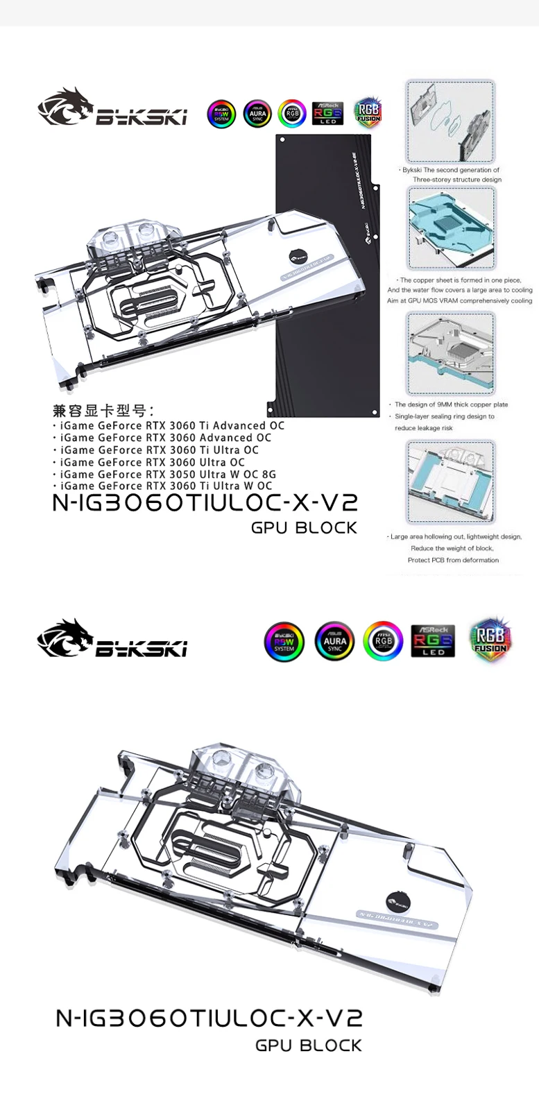Comprar Bykski-enfriador de agua para iGame RTX 3060Ti /3060, bloque de tarjeta avanzado OC VGA, radiador GPU 5V AUAR RGB N-IG3060TIULOC-X-V2