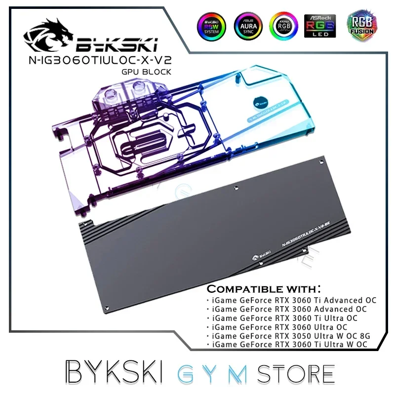 Comprar Bykski-enfriador de agua para iGame RTX 3060Ti /3060, bloque de tarjeta avanzado OC VGA, radiador GPU 5V AUAR RGB N-IG3060TIULOC-X-V2