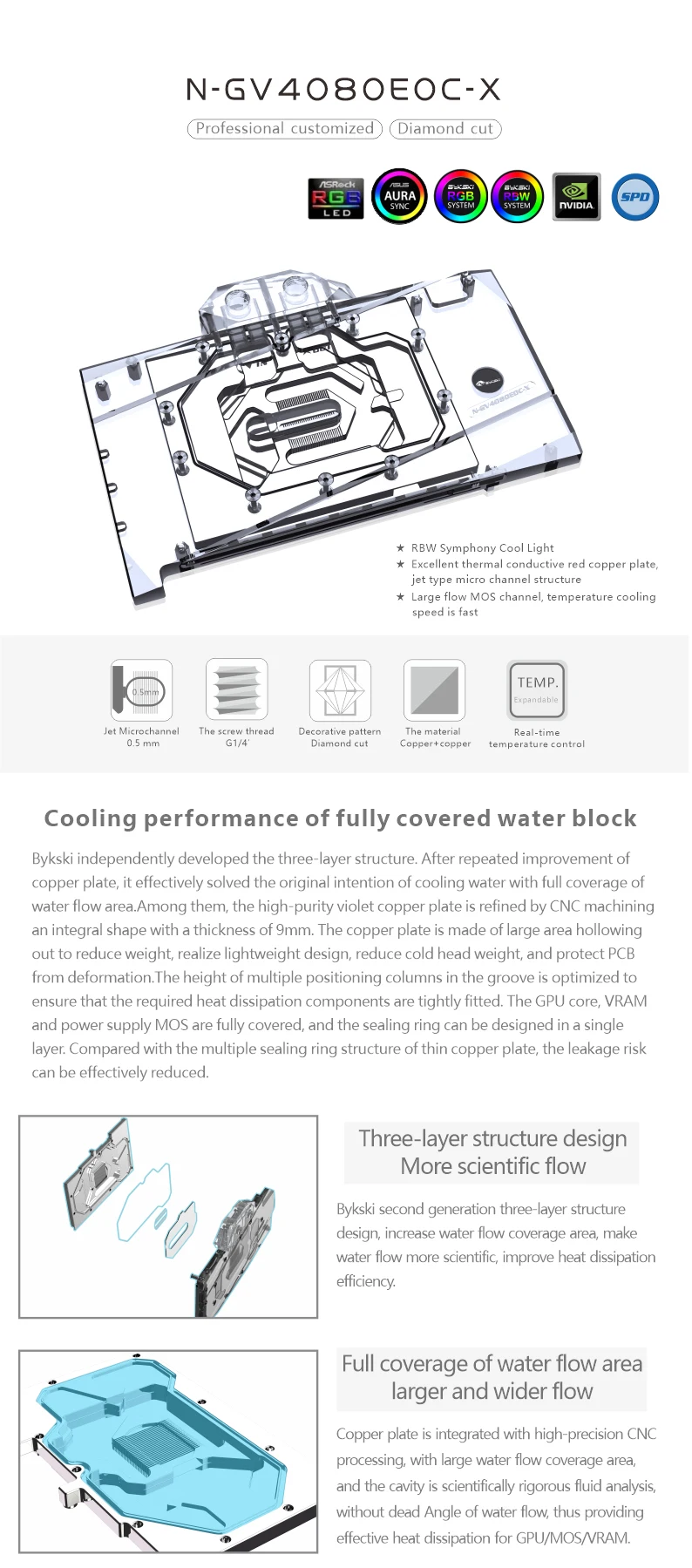 Comprar Bykski-enfriador de agua VGA de cubierta completa, GIGABYTE GeForce RTX 4080, 16G, tarjeta GPU EAGLE/radiador de refrigeración de cobre, sincronización RGB/N-GV4080EOC-X